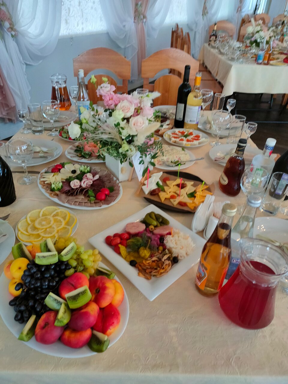10 июня отмечали свадьбу детей.все очень здорово вкусно и красиво.очень не понравилась администратор данного заведения к сожалению не помню как зовут.таких замок я не видела в своей жизни в. сфере обслуживания таких людей быть не должно.официанты отличные