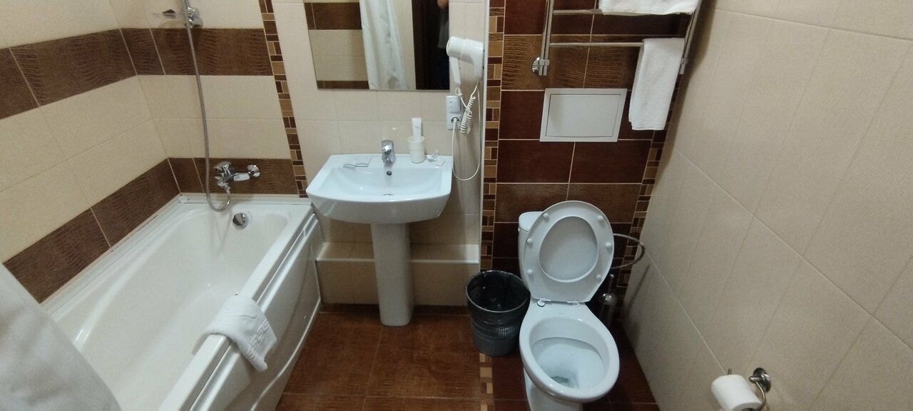Отель — одно разочарование! Откуда рейтинг 5.0 , не понятно. Начну с того, что при бронировании по телефону была озвучена одна сумма 3900р/сутки за 2х взрослых + доп.место ребенок. По итогу, на месте цена оказалась 5600р. Эти с натяжкой 3 звезды на такую сумму точно не тянут. Номер простенький с самым минимальным набором принадлежностей. Завтрак, те 2 дня что мы были, был один и тот же и ооочень скупой по набору. Расположение весьма не удобное, остановились только из-за того, что рядом было мероприятие. Приедете поздно — будте готовы остаться голодными, «ресторан» работает до 23:00 В общем, как путешественнику, лучше смотреть другие варианты или апартаменты. Этот выбор был однозначно провальным.