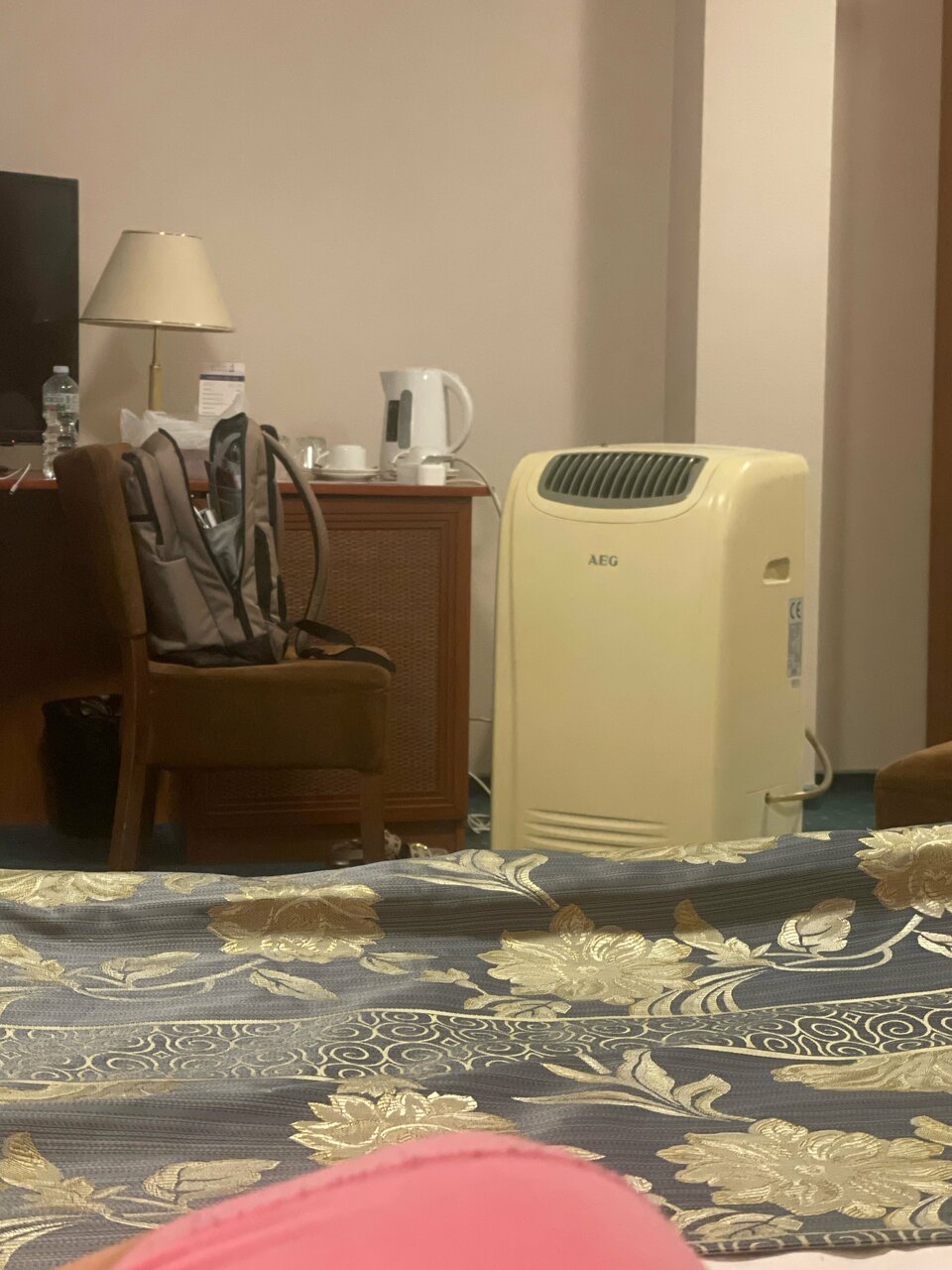 Здоровый напольный кондиционер который не дует холодным вечно течёт и шумит как пылесос и миксер одновременно. Утром в 7:15 примерно под окном мужик завёл трактор беларус и больше часа газовал на месте. Потом просто заглушил и ушёл. Завтрак вполне себе годный. Постели чистые.