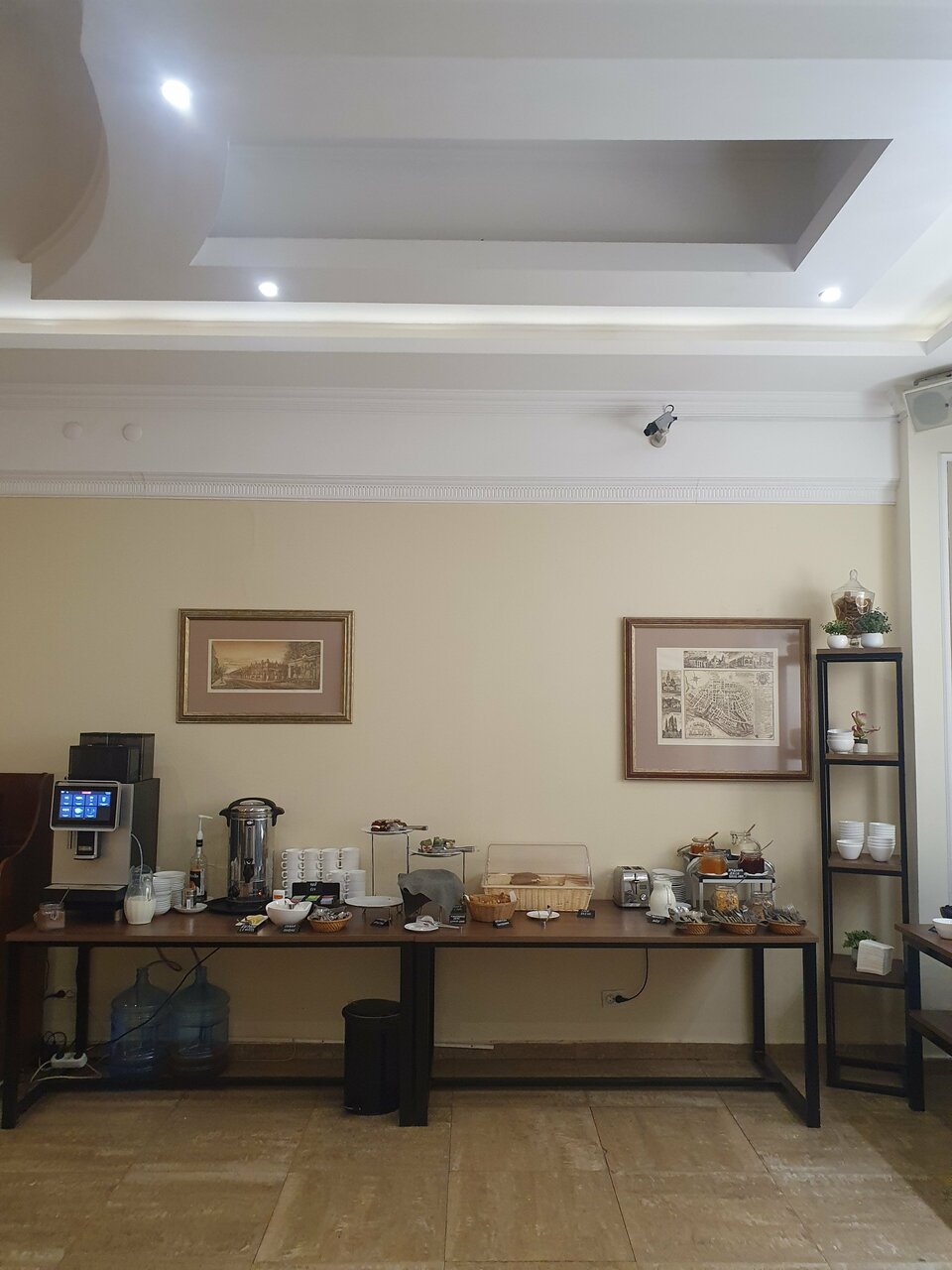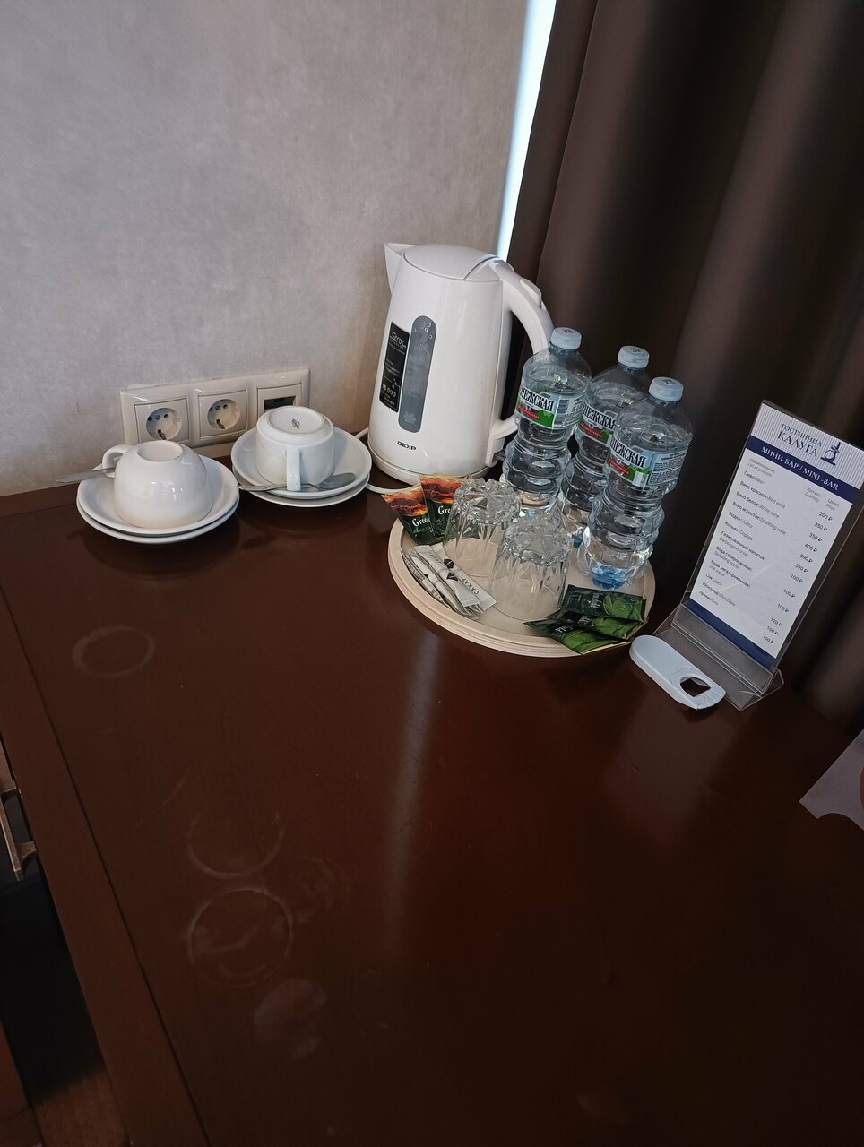 Что действительно радует- это отношение девушек на ресепшене, очень вежливые и приятные. Уборщицы тоже приятные дамы. В остальном всё не очень хорошо! Пятная на ковролине, которые собственники и не думают выводить . Заходя видны капли, возле кроватей странные пятна тёмного цвета. С утра вода горячая почти не работает. Если забронировал один человек номер, а вас двое,то придётся доплачивать за завтрак 700р, даже если это ребёнок. Цена конечно не маленькая за один только завтрак, с учётом того, что обеда или ужина нет. Шведский стол небольшой, радует, что некоторые девочки помогают налить чашечку кофе) Слышимость из корридора ужасная. Некоторые поситители уже в пол 8 начинают галдеть, рассижива на диванчиках. Глажка белья и прочее мне кажется дороговато по стоимости- от 200р. Постельное бельё жестковато, матрас пружинный, не очень удобный.