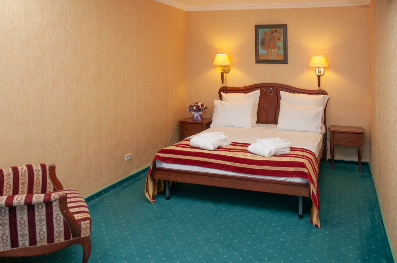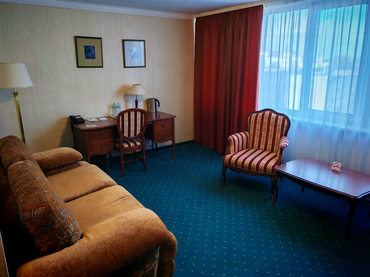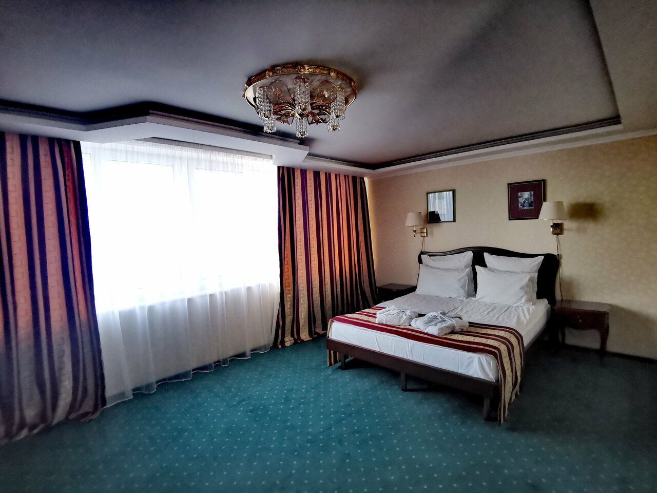 Отель немного из советского прошлого, как мне показалось)) Но у него есть ряд преимуществ, как то : хорошее расположение , бесплатная парковка, большие номера и приятный персонал. И таки да — гуманная цена! Номер можно брать с завтраком и без. Не могу сказать , что завтрак поразил воображе6ие, но всё съедобно, да и справедливости ради, дома — это мюсли и кофе или кофе и бутер, а тут можно и повыбирать)) Номер был несколько уставшим, но тихим, соседей не слышали. Надеюсь, что была объективна)) Всем приятных путешествий, хорошего отдыха и положительных эмоций!