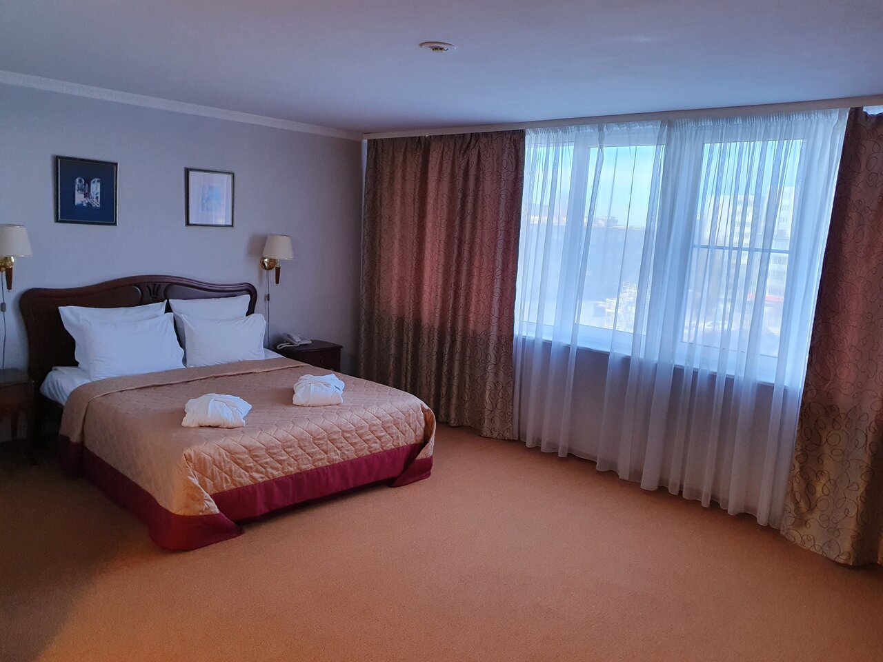 Гостиница отличная. Я проживал на 8 этаже. В номере чисто, аккуратно. Обслуживание на высоком уровне. Все приветливые, всё с заботой. Удобное расположение в городе. Торгово-развлекательный центр ’21век’ в этом же здании. Ресторан в гостинице отличный, очень вкусно готовят. Понравился завтрак включённый в стоимость проживания. Из минусов: не предоставляют зубную щётку. Нет халата. Спасибо, рекомендую!