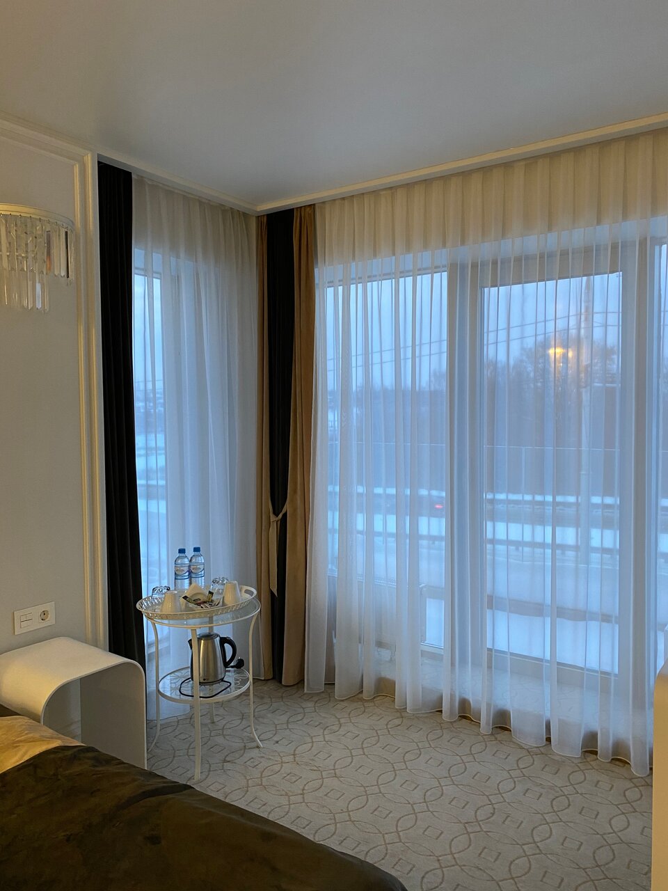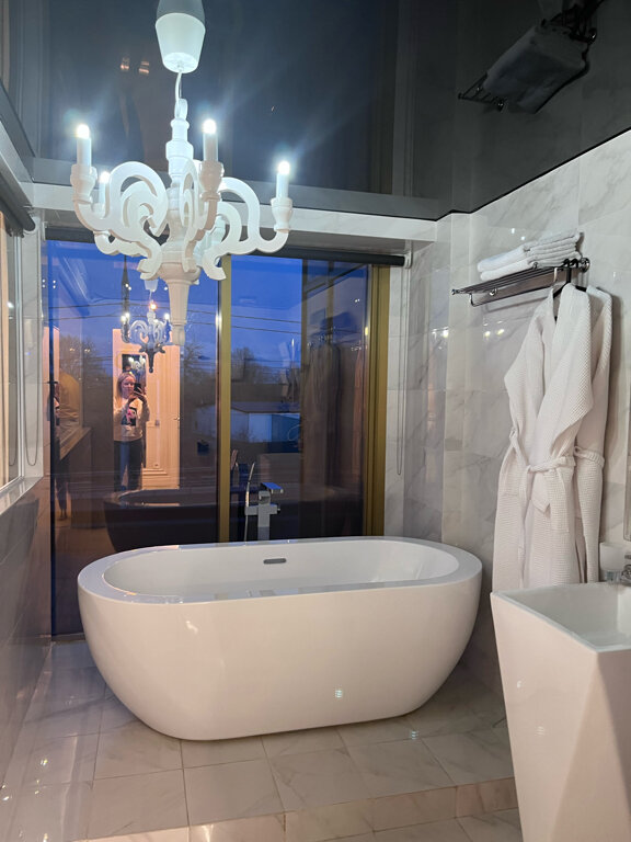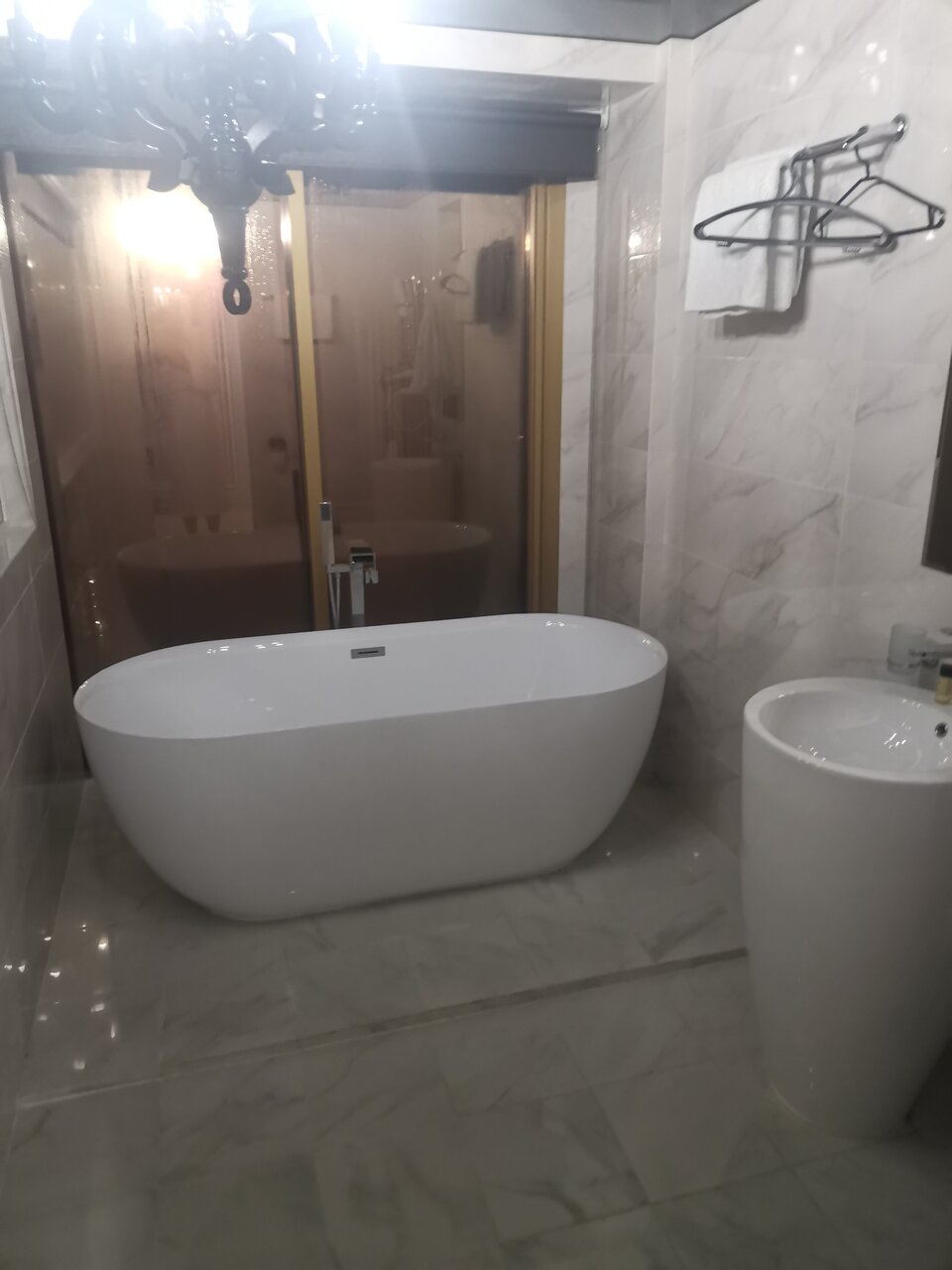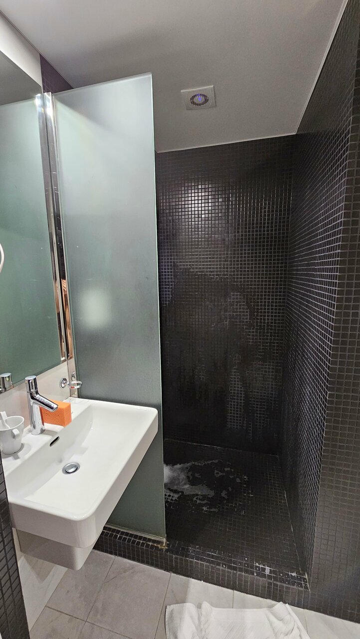 Привет! На бра паутина, на светлом полу в ванной следы от обуви, и самое стремное это слив в душе, моешься по колено воде)))! отель новый красивый, приветливый персонал, но читайте выше! Ценник и паутина на бра не соответствуют!