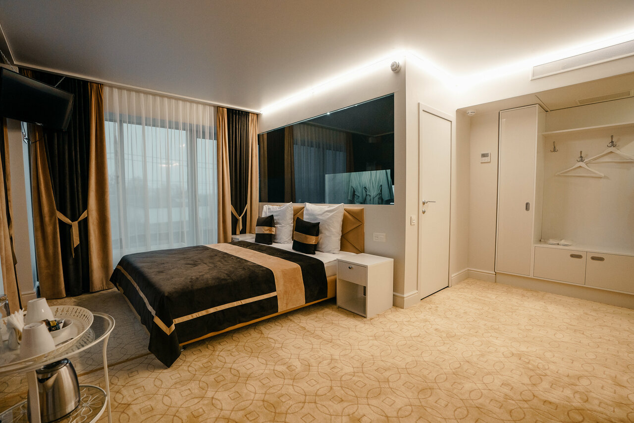 Отличное место для остановки, как одному так и с семьей. Большие просторные номера, современный дизайн мебели. Удобный санузел, с огромной душевой кабинкой. Порадовал набор средств гигиены( зубная щетка с пастой, бритвенный набор, косметический набор, гель, шампунь, расческа, шапочка для душа). Если бы в него входила еще разовая мочалка . Единственное что не очень понравилось — подъезд к гостинице, и парковочные места. Но предполагаю это из за строительных работ. Моя оценка твердая 5.