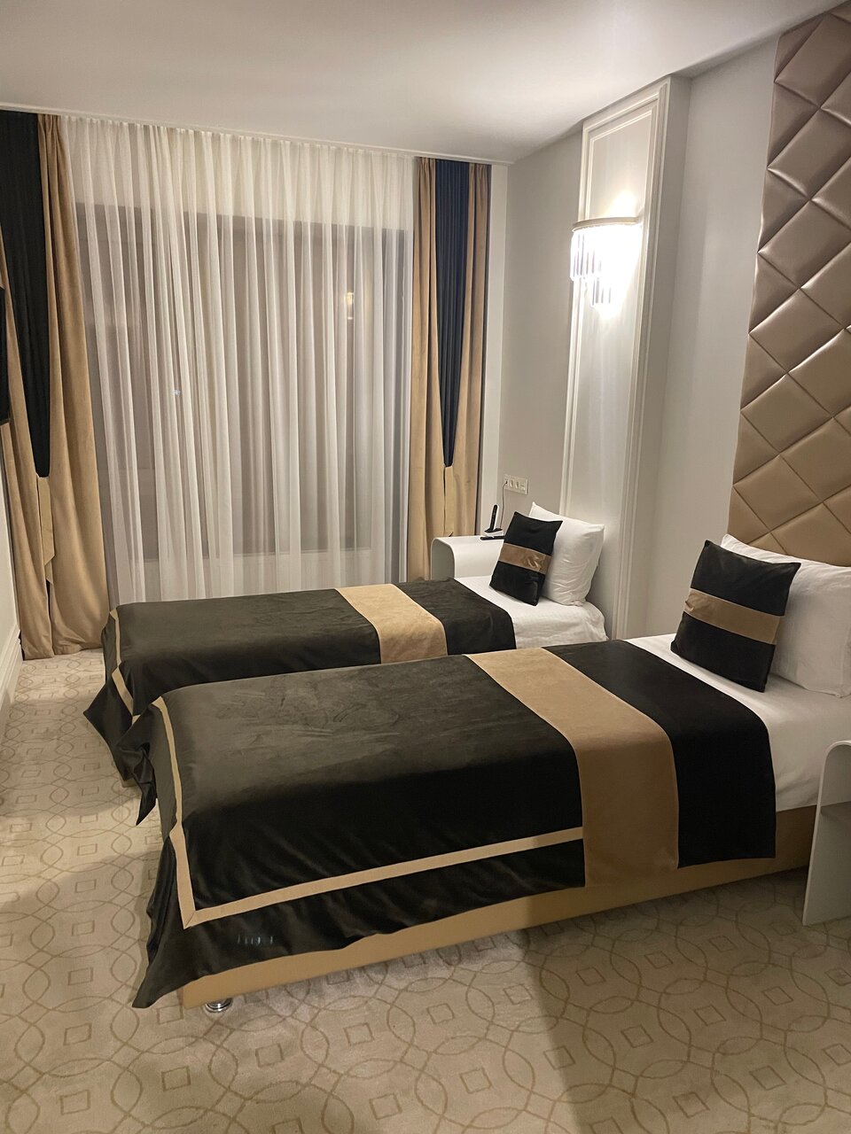 Хорошее место, на 4 с плюсом. Персонал приветливый и отзывчивый. Очень удобные кровати и чистое белье, часто меняют полотенца, обновляют бутылированную воду, чай/кофе, есть чайник. Сантехника хорошая. Кондиционер работает прекрасно. Есть ресторан, администраторы следят за тишиной в вечернее время, чтобы гостям отеля было комфортно. Есть небольшой запах в номере (не ужасный, но характерный), светлый ковролин уже немного пострадал от предыдущих гостей. Единственный минус — отель находится у дороги, постоянный шум машин (я решила этот вопрос берушами, т.к. сплю очень чутко и не привыкла к шуму).