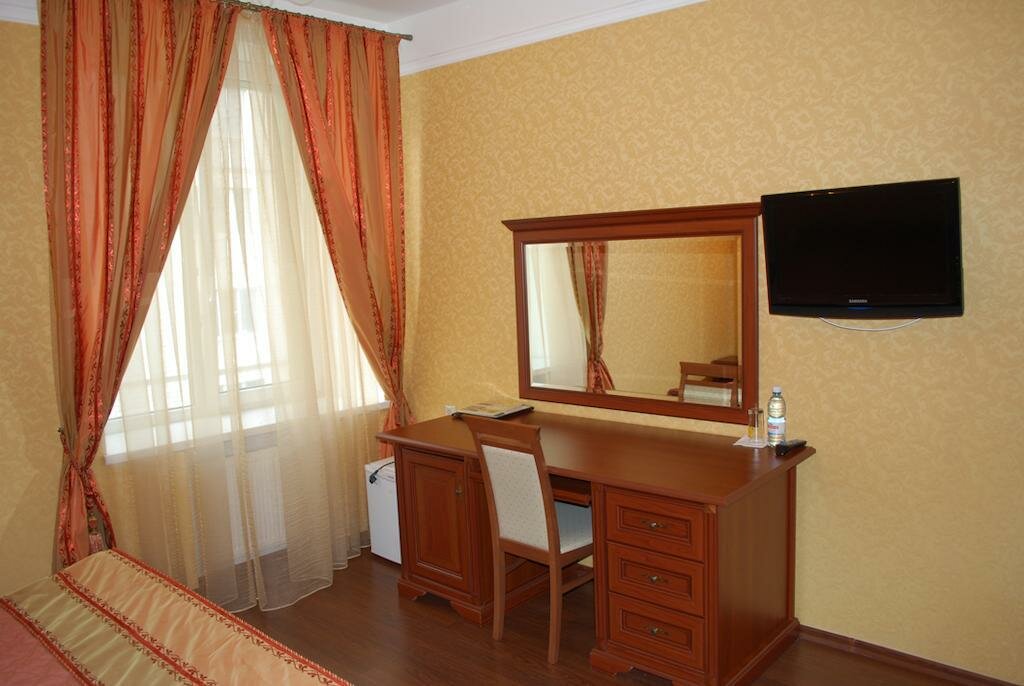 Впечатления хорошие только от администратора, вежливой дамы, которая нас встретила и проводила до номера. В номере вонь канализации в ванной, понятно, что и основную комнату она доносится. Окно мы открыли только пока не спали, чтоб проветрить, спать невозможно, нам дали номер 5 (мансарда), окна выходят на улицу Суворова, и кто бы знал что в 3 утра по Калуге кто-то будет ездить(. Стало душно, открыли окно и ощущение что около кровати машины ездят, потом мужики видимо вышли из ресторана, слышно все. Я не знаю как летом там люди вообще выживают! В итоге собрали вещи, и в 4 утра уехали из этого ужасного места. Ааа ещё уборщице привет передайте, которая унитаз не может помыть нормально! Снимали номер стандарт мансардовый этаж. Без лифта(так что у кого тяжёлый чемодан, то точно не сюда). Нашей ноги здесь точно не будет!