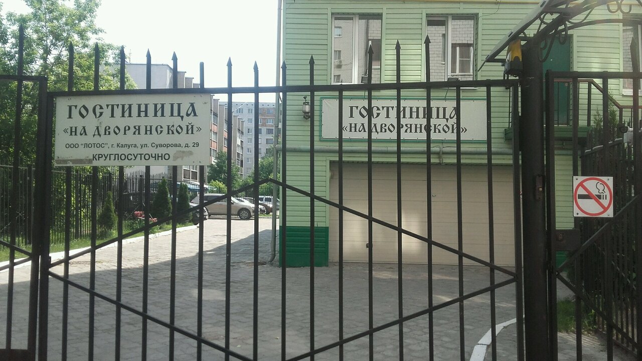 Гостиница «На Дворянской» (Калуга, ул. Суворова, 29) — мини-отель категории 3 звезды, работающий круглосуточно. Расположен вблизи центра и парка, предлагает комфортные номера с кондиционером, Wi-Fi, телевизором, холодильником и санузлом.