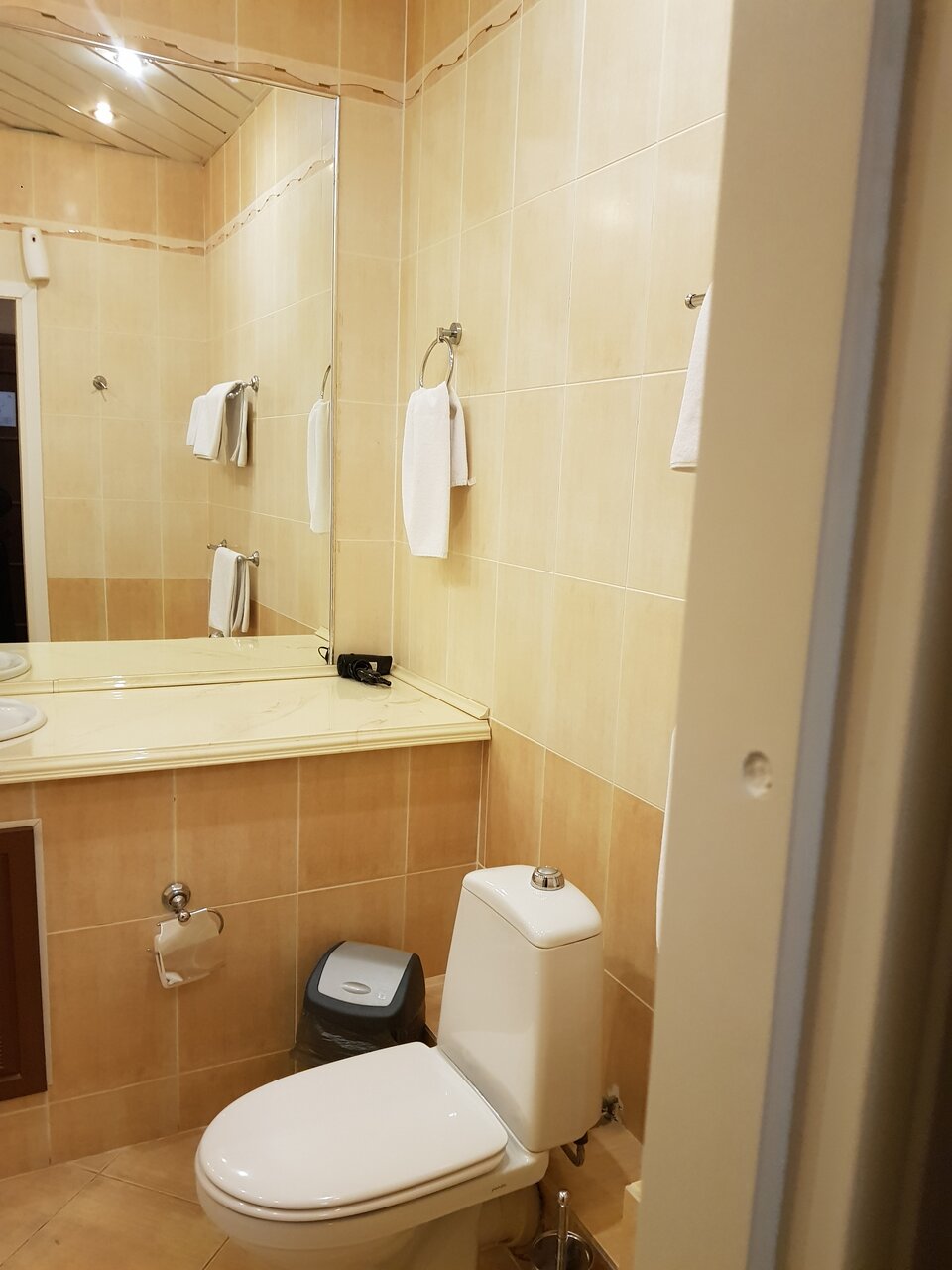 В целом номер неплохой, но ‘уставший’, душевая древняя и вонючая слив воды очень медленный, кондиционер центральный, это факт нигде не указан, стандартные номера на последнем этаже без лифта. Постельное белье без нареканий белоснежное и явно новое. Завтрак замечательный, очень вкусно все- от каши до омлета, кофе растворимый но приятный. Остановиться только на одну ночь.