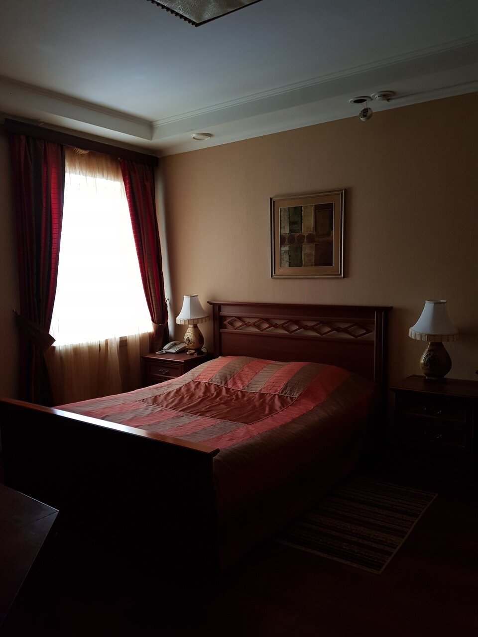 Останавливались с 4 на 5 ноября. Расположение хорошее, завтрак по выбору приносят в номер. Номер стандартный, обои отклеивается, белье постельное затхлое, из ванны пахнет. И самое главное в номере нет тишины, шум, гудение при закрытом окне идет от вентиляционной трубы за окном от кухни ресторана, номер нам не поменяли , отключили вытяжку наверное часов в 12 ночи. Открыть окно проветрить комнату нельзя, идет шум и запахи от ресторанной кухни. Отель не рекомендую.