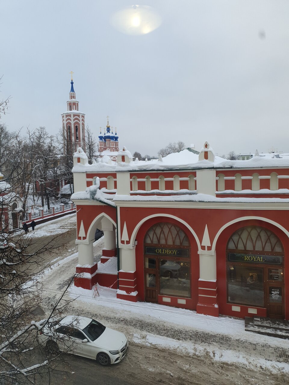Отличная гостинница, постоянно останавливаемся в ней будучи в Калуге, расположение для нас идеальное, парковка и кафе …номера всегда идеально чистые, постель супер, что ещё нужно для отличного отдыха. Нафото вид с крыльца гостинницы.
