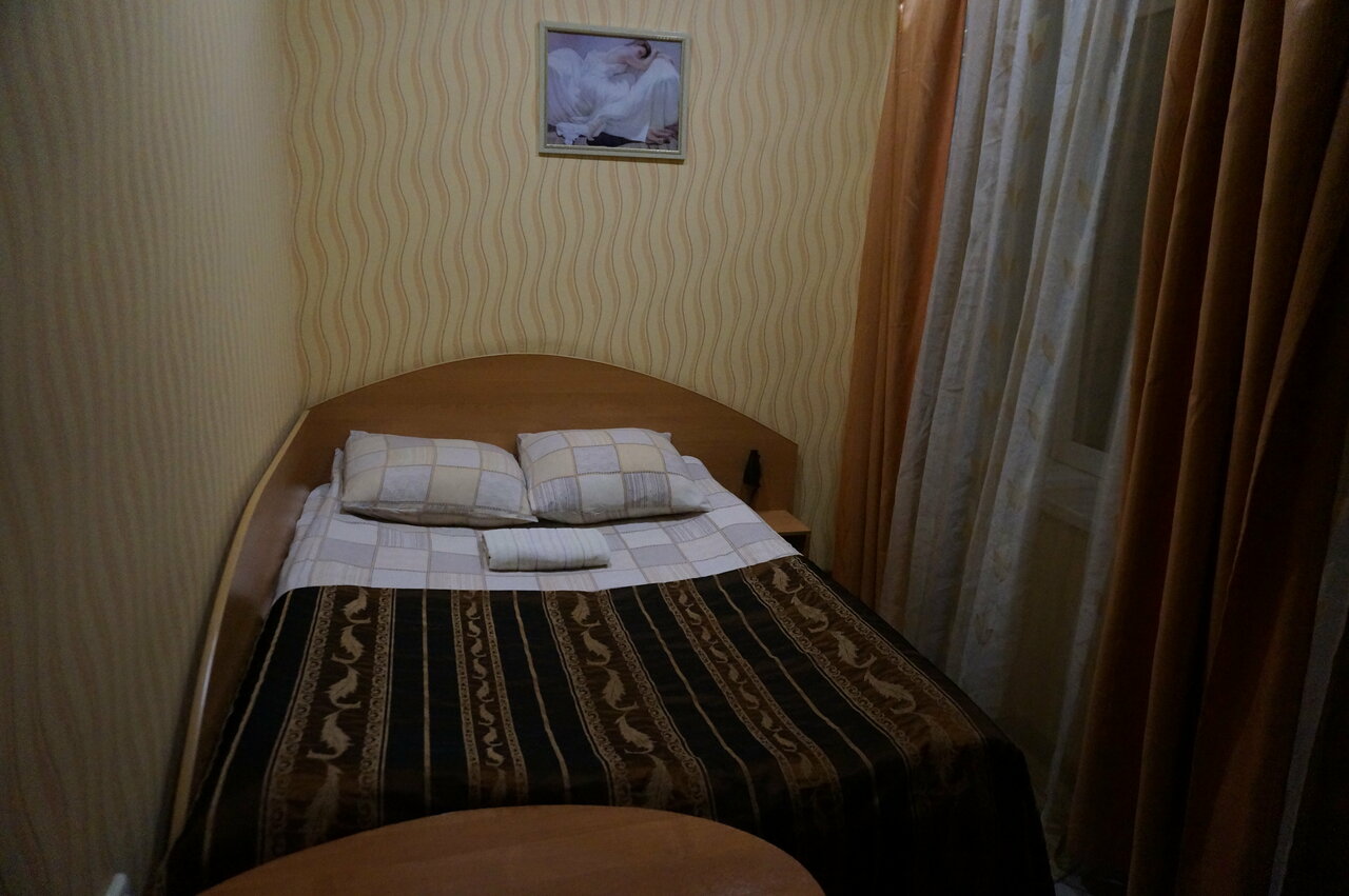 В этом городе первый раз. Приехала на на четыре дня по работе. Искала доступное жильё на этот период. Гостиница небольшая,но тихая . Сняла номер на одного, без питания. Приятно удивлена ценой за номер. В номере есть маленький холодильник, телевизор. Чайник выдали. Чистенько, аккуратно. Номер подойдёт для одного или семейной пары. Есть паркинг для вашего автомобиля.