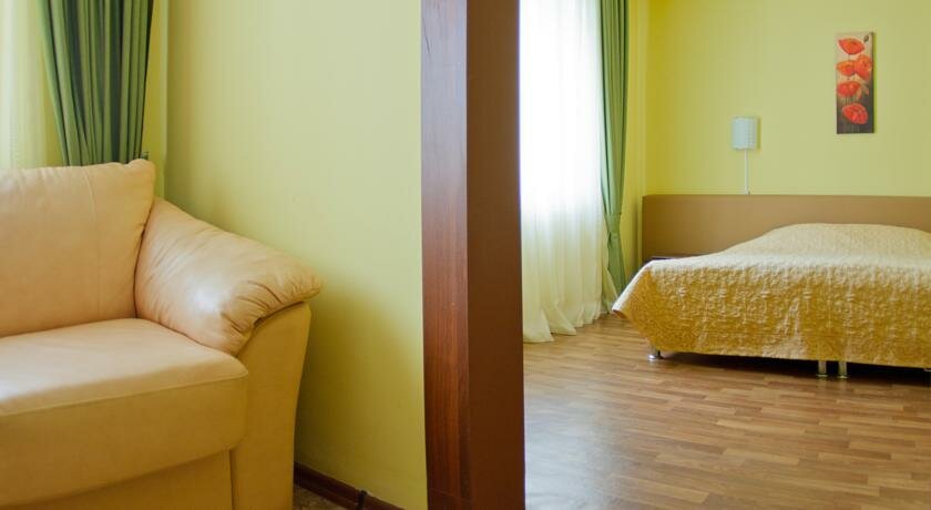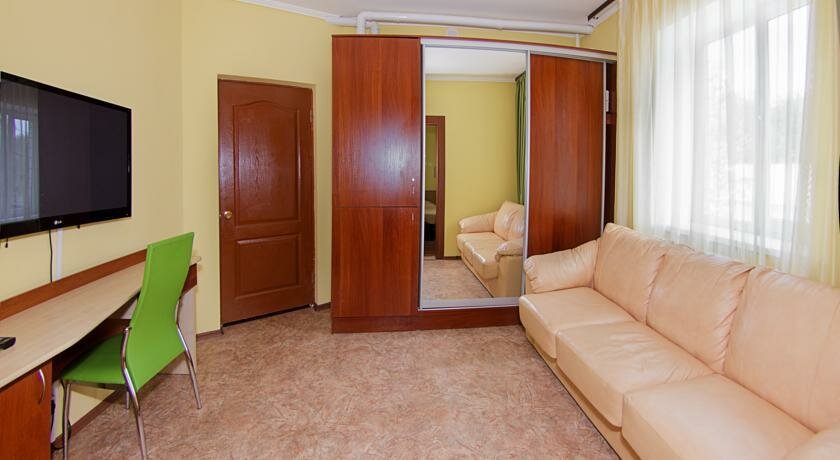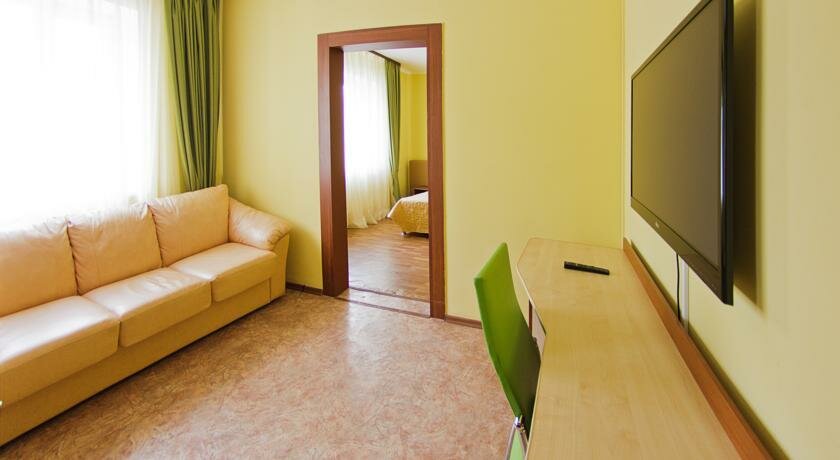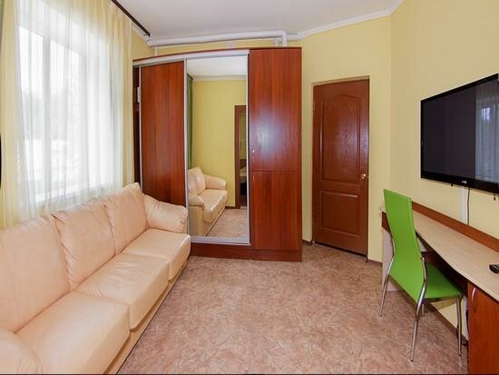 Выручила нас на одну ночь. Но конечно номер какой был у нас хоть и двух комнатных но не приспособлен для проживания с ребенком. В целом все было чисто. Есть телевизор и холодильник-минибар. А если просто паре можно и остановится