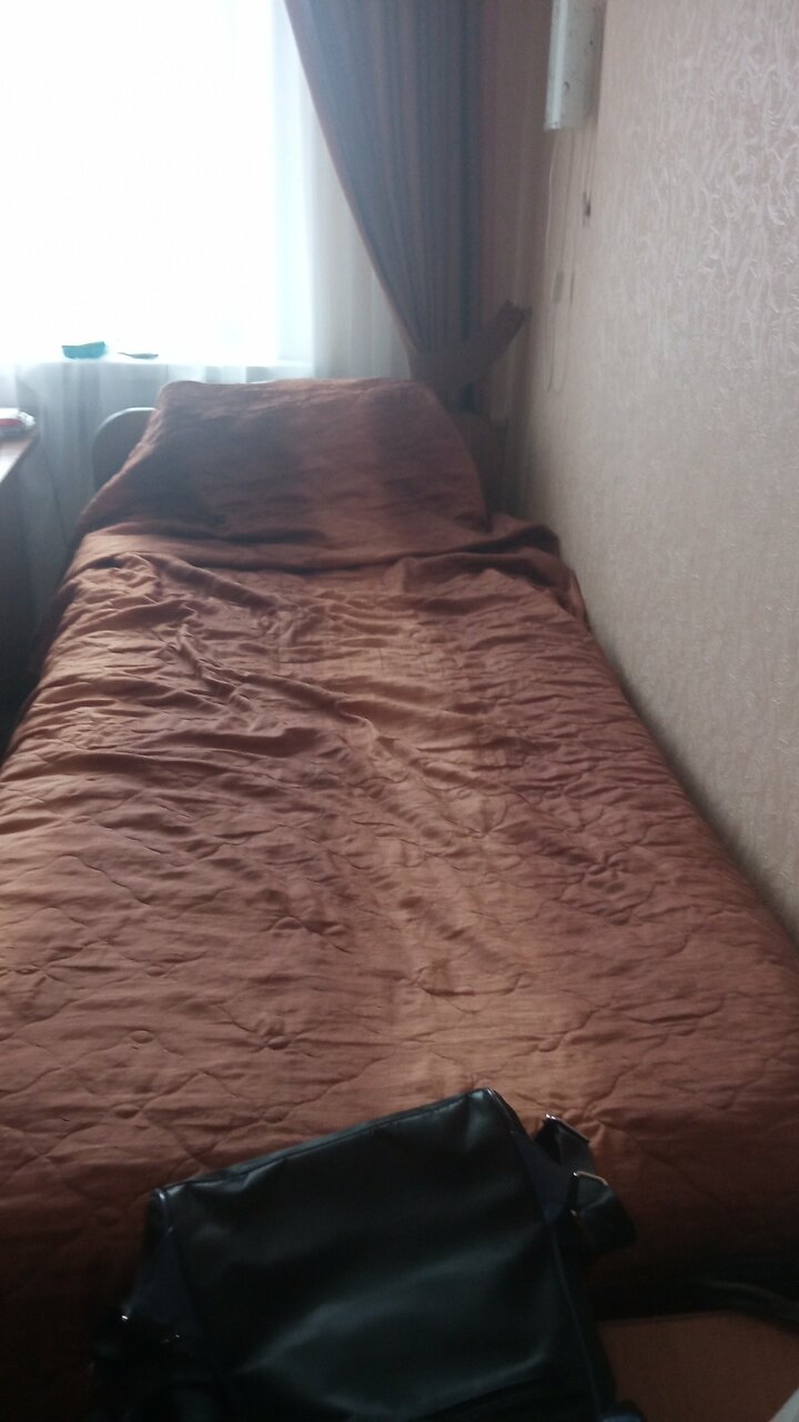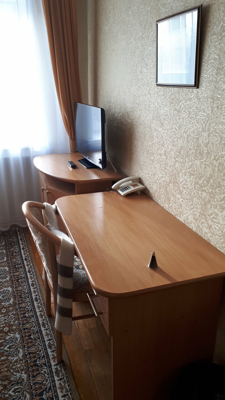У гостиницы очень хорошее расположение, быстрое заселение. В номерах чисто, но интерьер из 90-х, номера требуют ремонта. Было очень холодно, пол в санузла ледяной. Т.к. полотенец было в избытке, пришлось лишние использовать в качестве коврика для ног. Хочу отметить очень удобный матрас и подушку, постельное белье и полотенца чистые. Нормально для ночёвки.