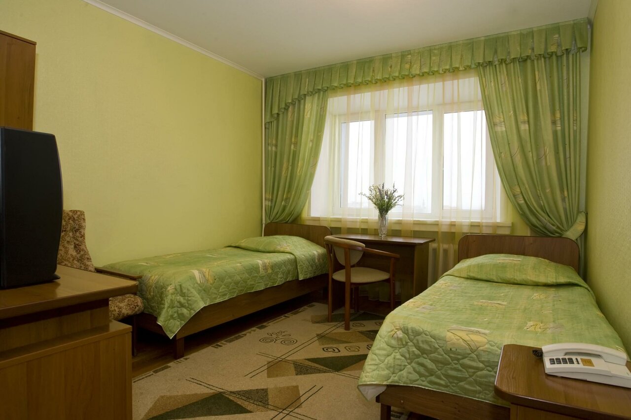 Гостиница советских времён, везде старые ковры.Обслуживание на троечку. В комнате одна розетка и та за тумбочкой. Из плюсов хорошее расположение.