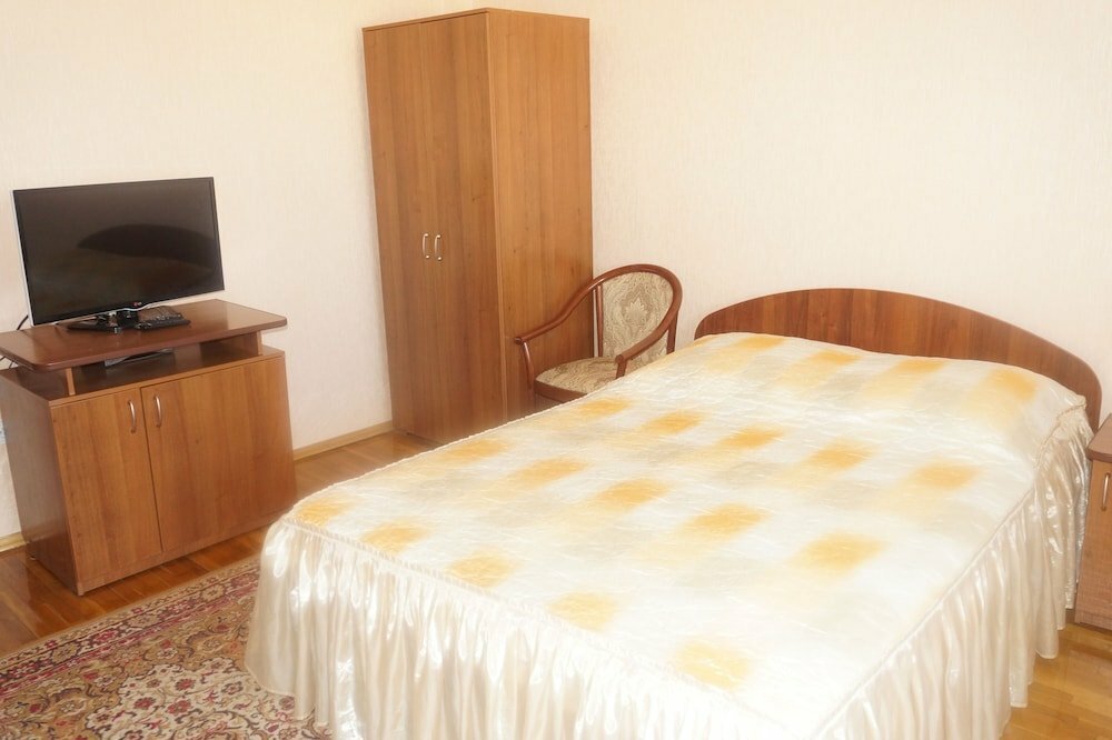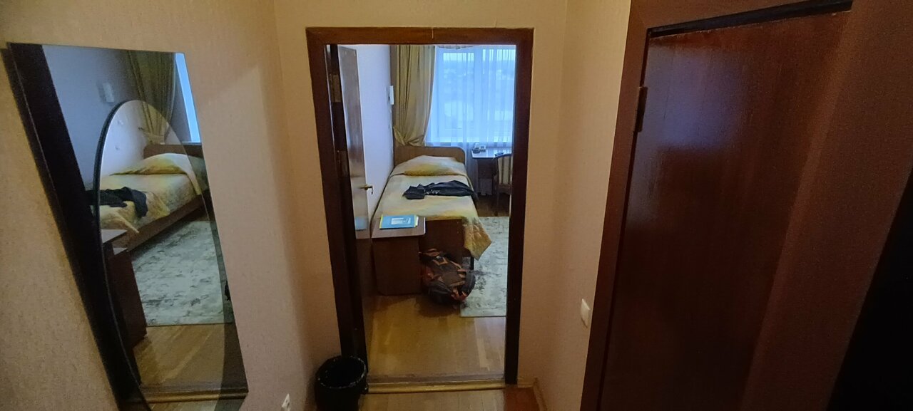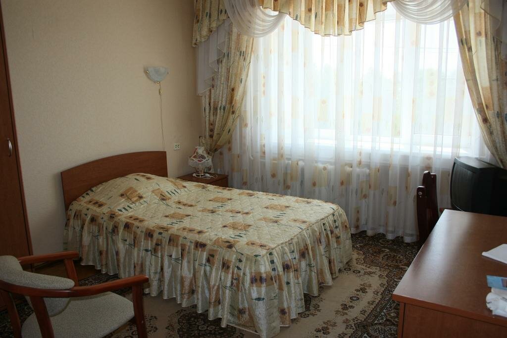 Отличная гостиница. Крепкая трешка. Чисто, сделан косметический ремонт, новая сантехника. Дают тапочки. Есть фен. Мебель некоторая старая, пол — паркет, но за такую цену — очень приличное место для проживания. Центр города недалеко, поблизости магазины, столовые, рестораны.