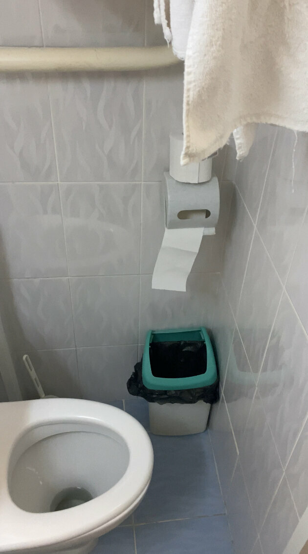 Приходила уборщица, пока меня и моей подругм не было и выкинула наш пакет с продуктами. Еда ужасная. Как будто стояла долго под открытым окном в жаркую погоду. Лучше есть в ресторанах или кафе, чем в этом месте. Дверь в ванную не закрывается. Стены картонные, слышали своих соседок