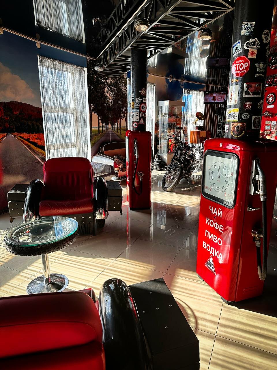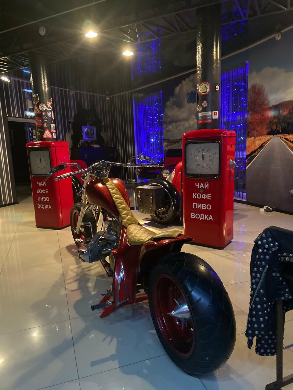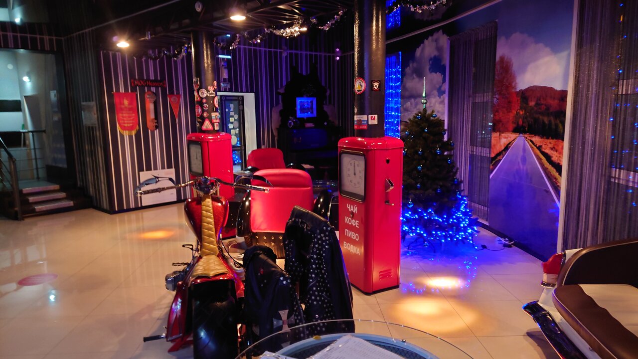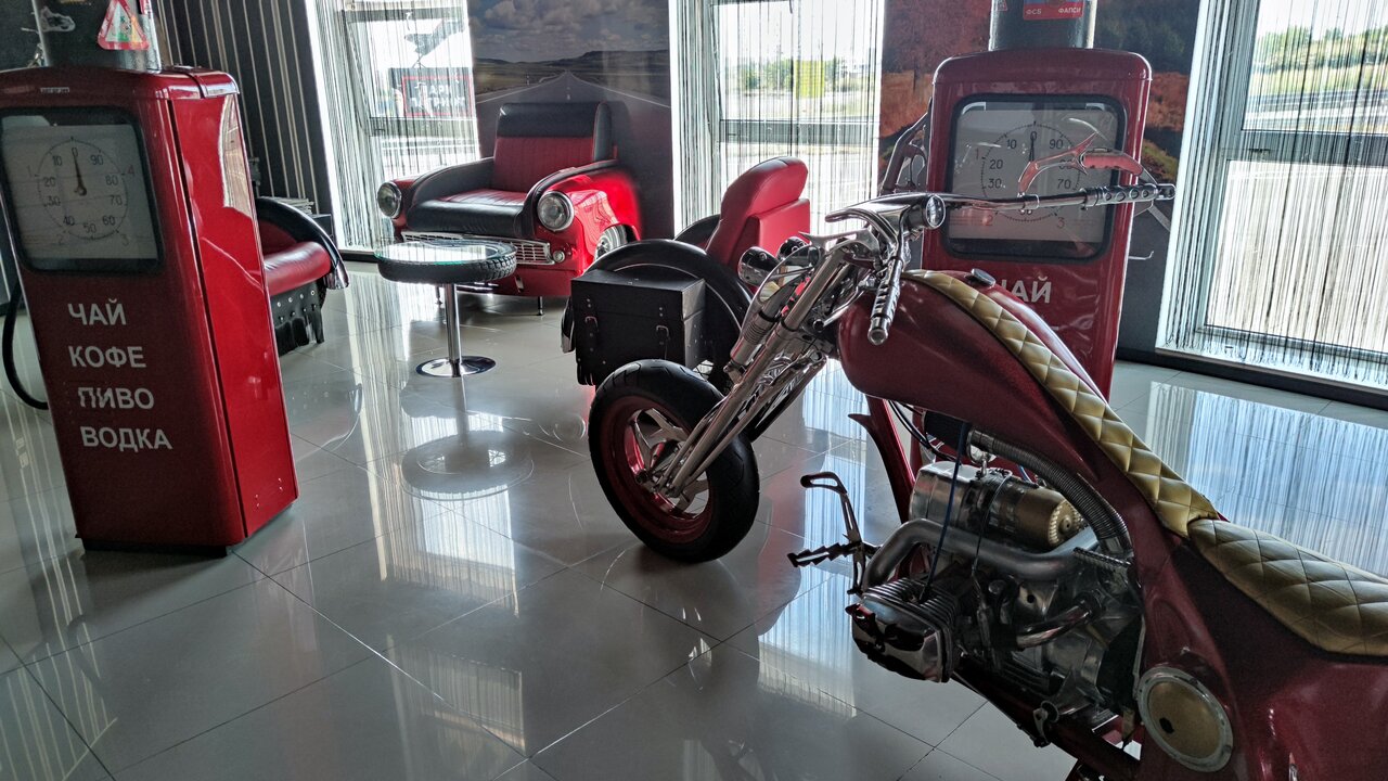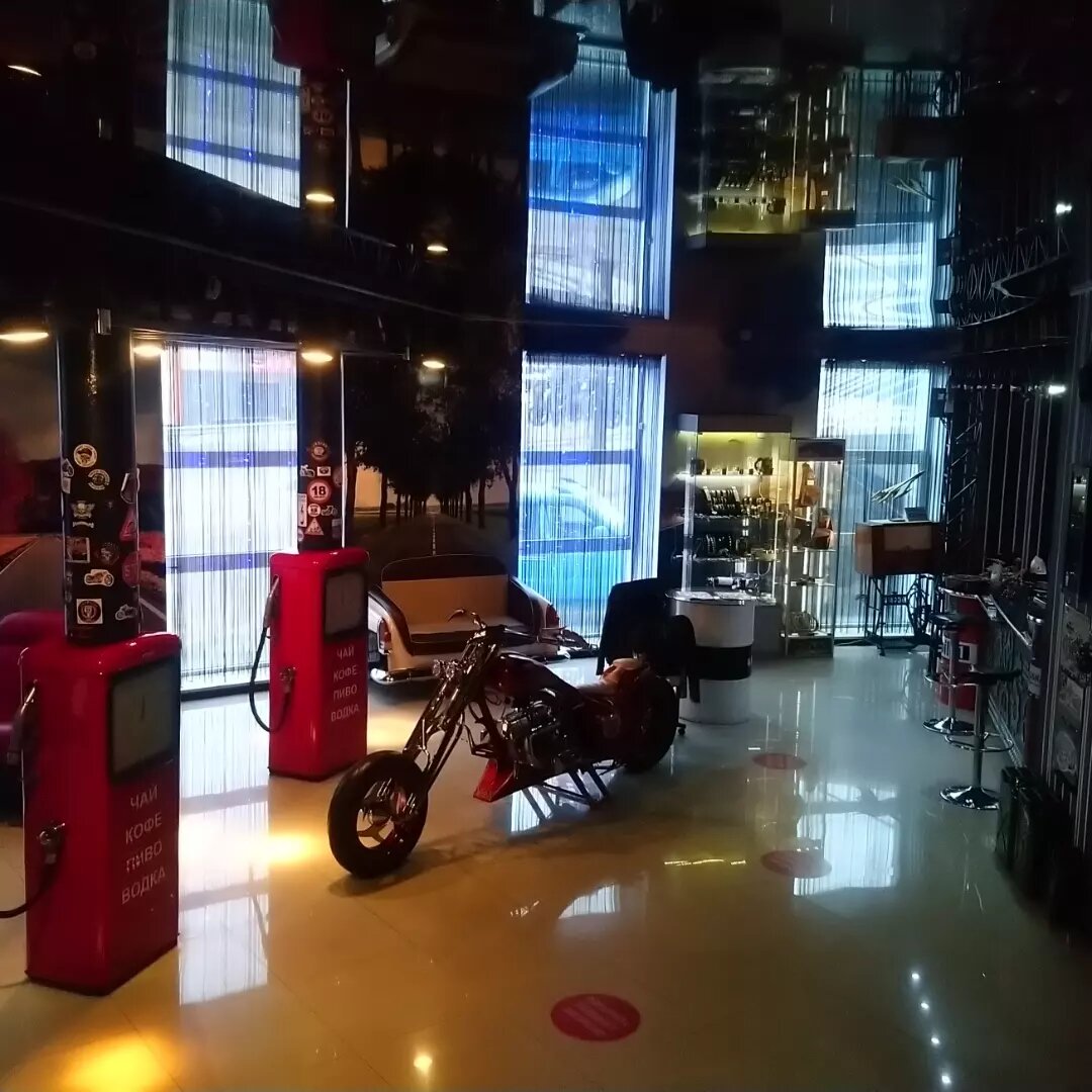 - Фотогеничная территория с необычными экспонатами (мотоциклы, ретро-машины).