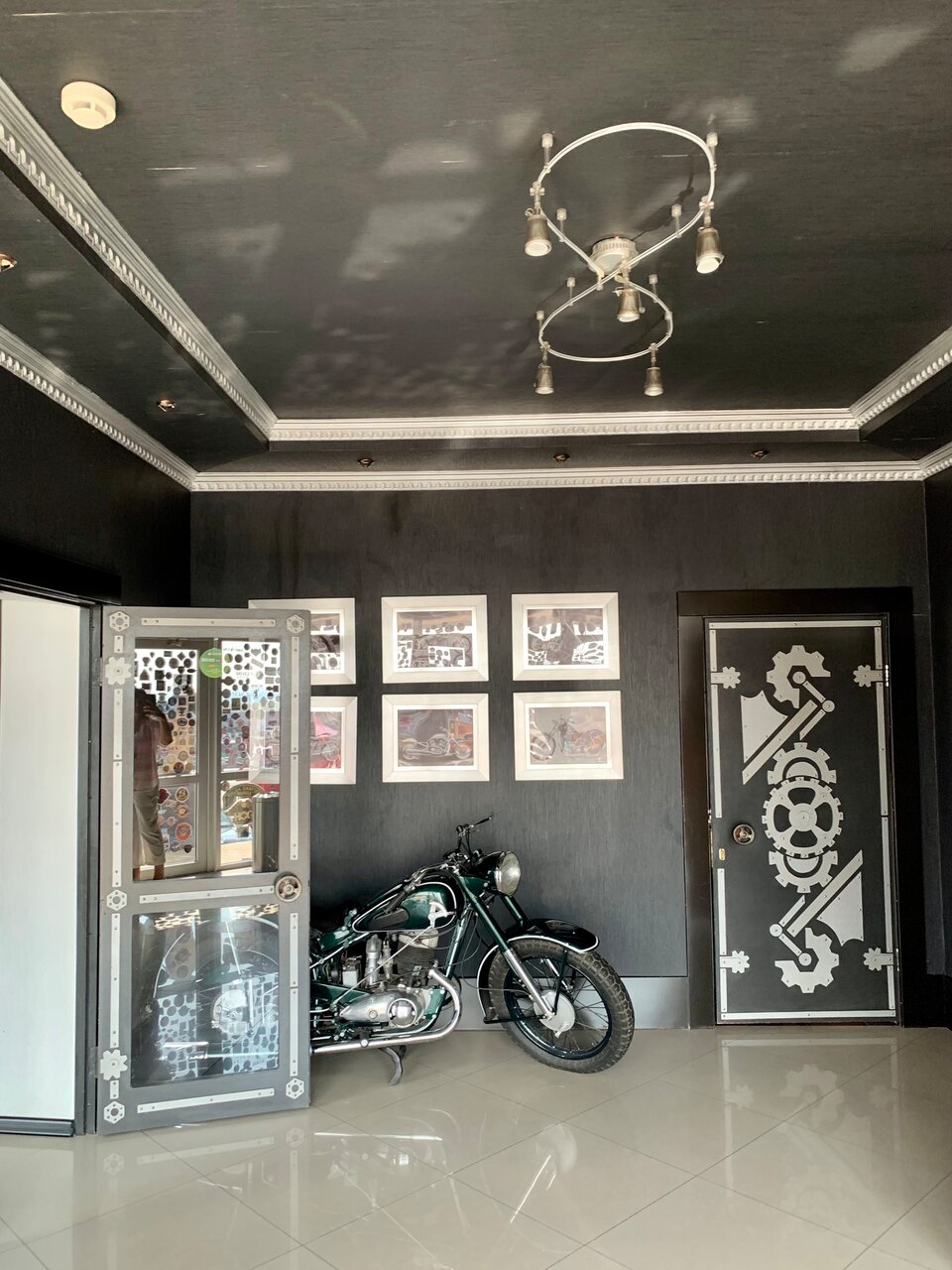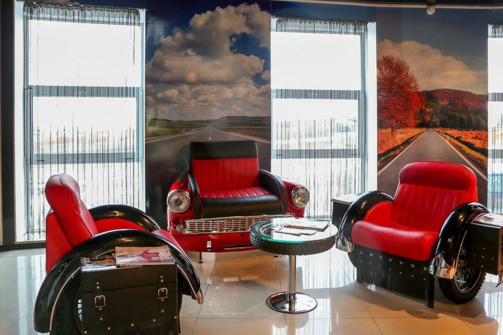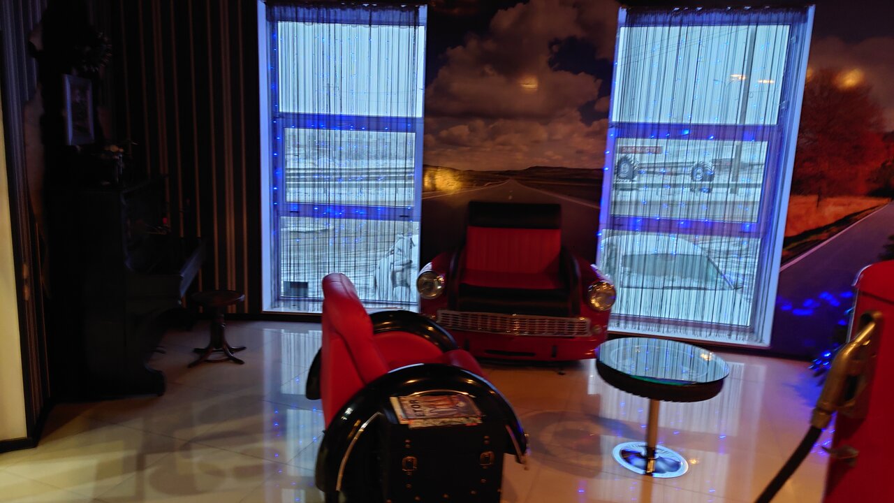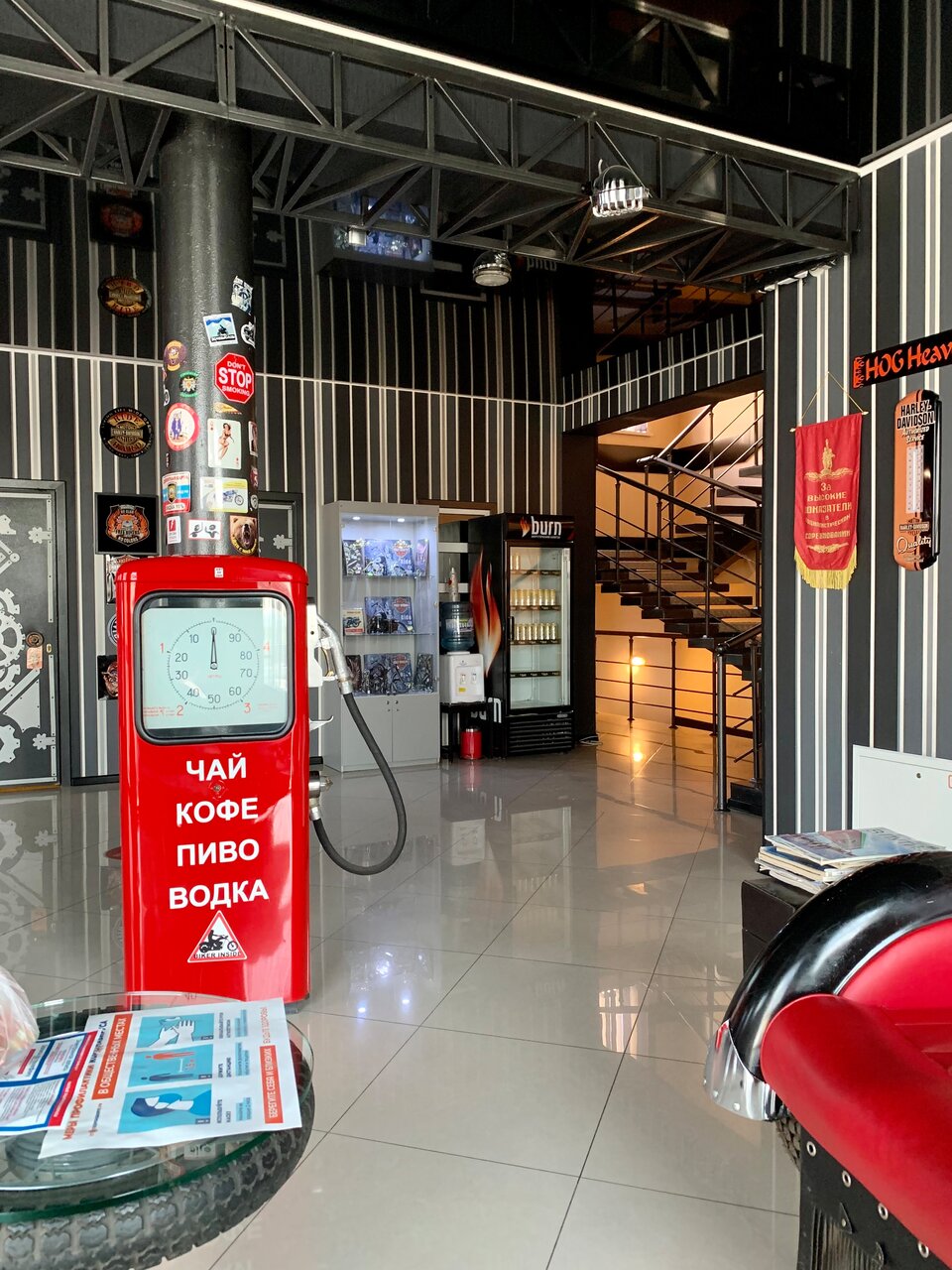 - Фотогеничная территория с необычными экспонатами (мотоциклы, ретро-машины).; Возможность размещения семьи (до 4 человек).; Внимательный и вежливый персонал.; Чистые номера с удобной мебелью (двуспальная кровать, диван, кресла).; Интересный брутальный дизайн отеля.