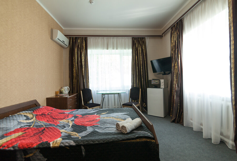 Останавливались на одну ночь по дороге в Есентуки. Очень понравился большой и чистый номер! Разместились в четвером (2 взрослых и 2 детей) без всяких проблем! В номере есть все необходимое: кондиционер, небольшой холодильник, тв, чайник. Порадовала цена. Однозначно рекомендую!