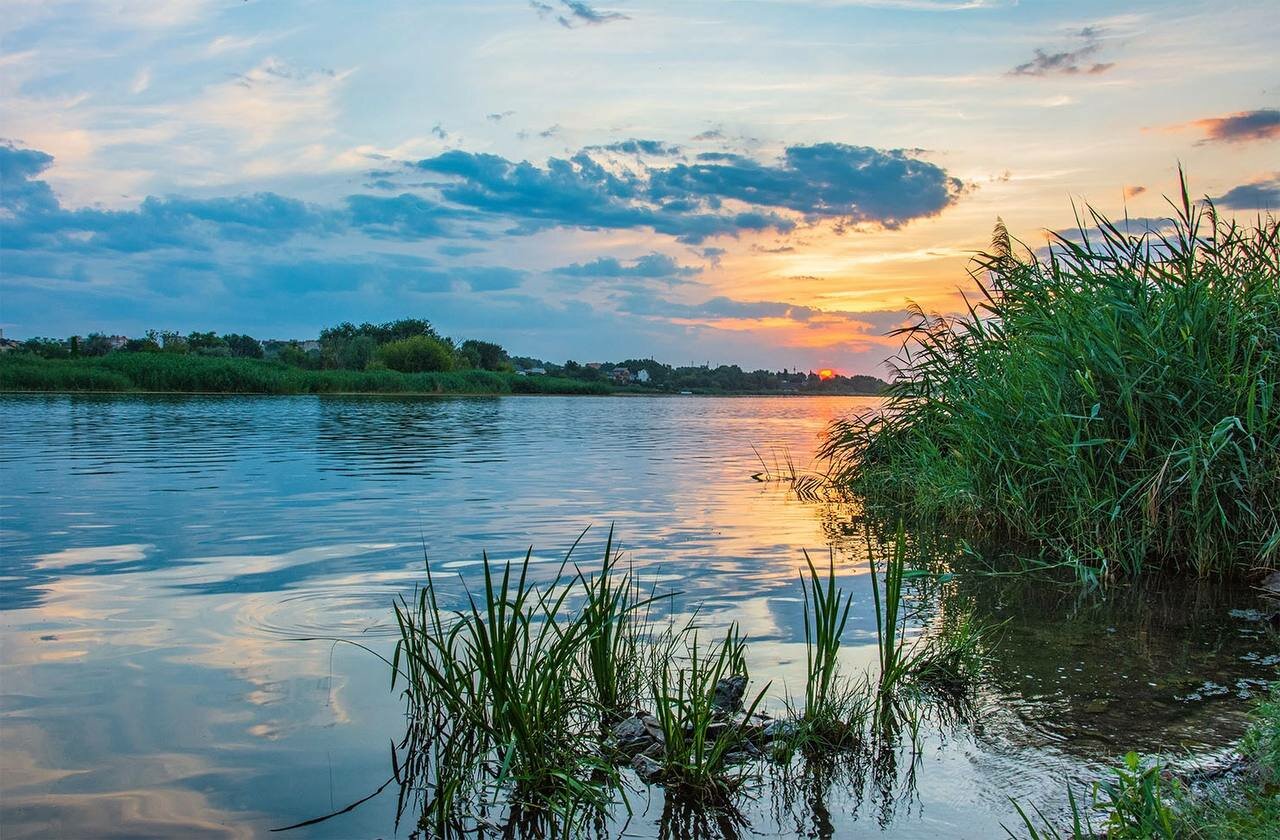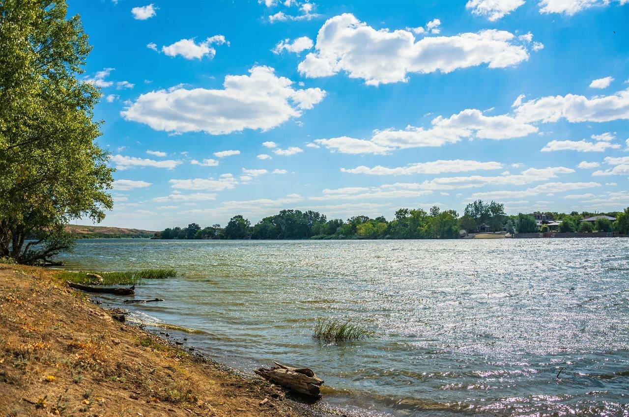 - Чистый берег и спокойная река.