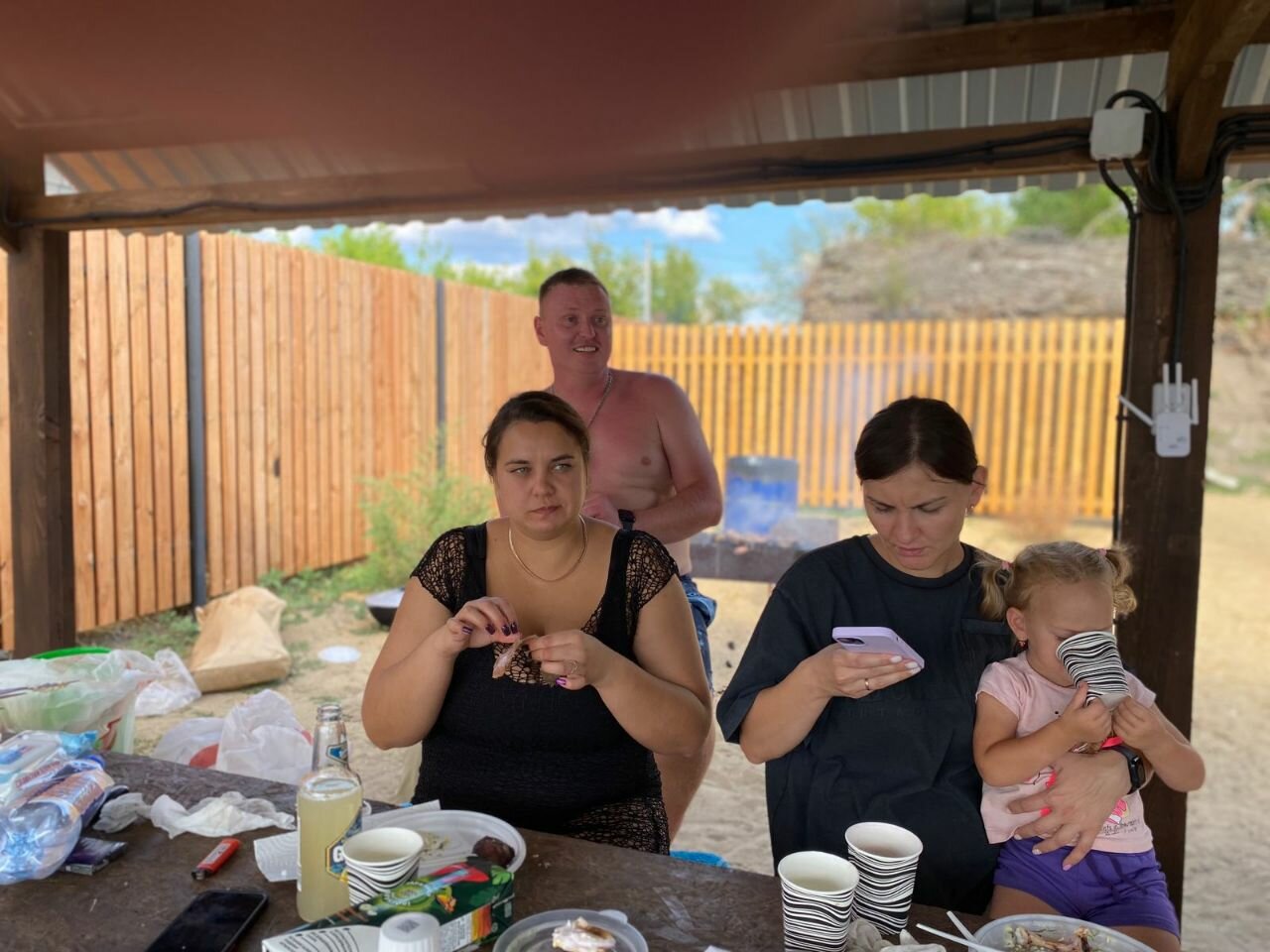 - Общий чайник и холодильник на улице.