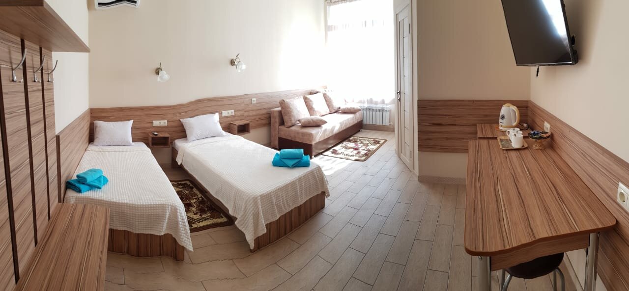Останавливался там с супругой и маленьким сыном в июле 2019, по пути в Анапу и обратно. Чисто, уютно, тихо. В номере все необходимое. Душ, телевизор, стол, набор посуды. В коридоре кулер и микроволновка. По требованию выдают фен. Персонал работает круглосуточно, приветлив и вежлив. Минигостиница на втором этаже. На первом магазин сети пятерочка. Это очень удобно.