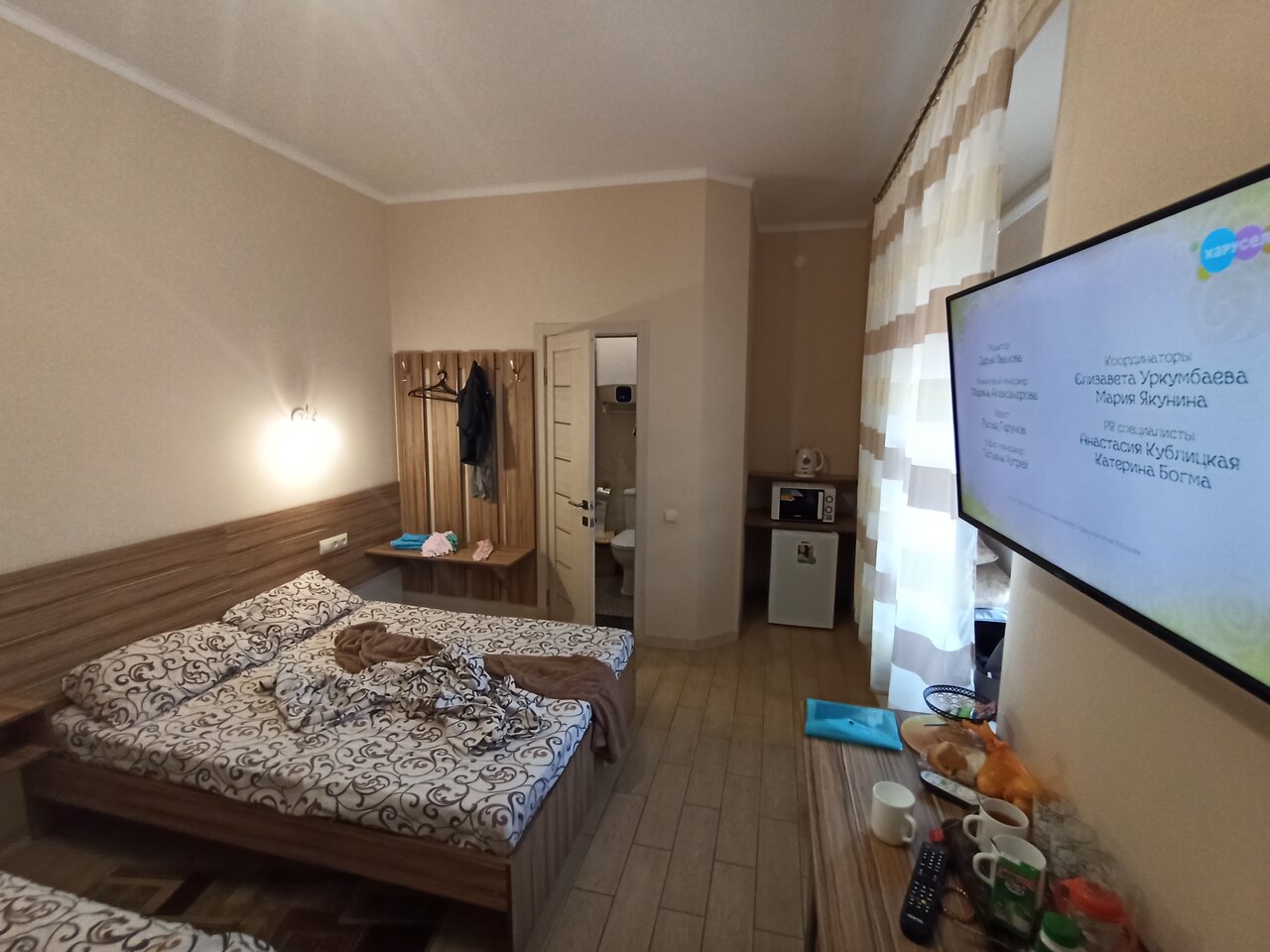 Это лучший ночлег , приезжаешь и реально отдыхаешь в чистоте, комфорте, уюте. Спасибо , что стараетесь. Есть замечание к шампуням и гелям, слишком жидкие, но это мелочь, можно вылить побольше) средний ценник 2500. Ещё нюанс-это съезд с трассы в город, немного далековато. В одном зданиии с отелем магазин пятерочка.