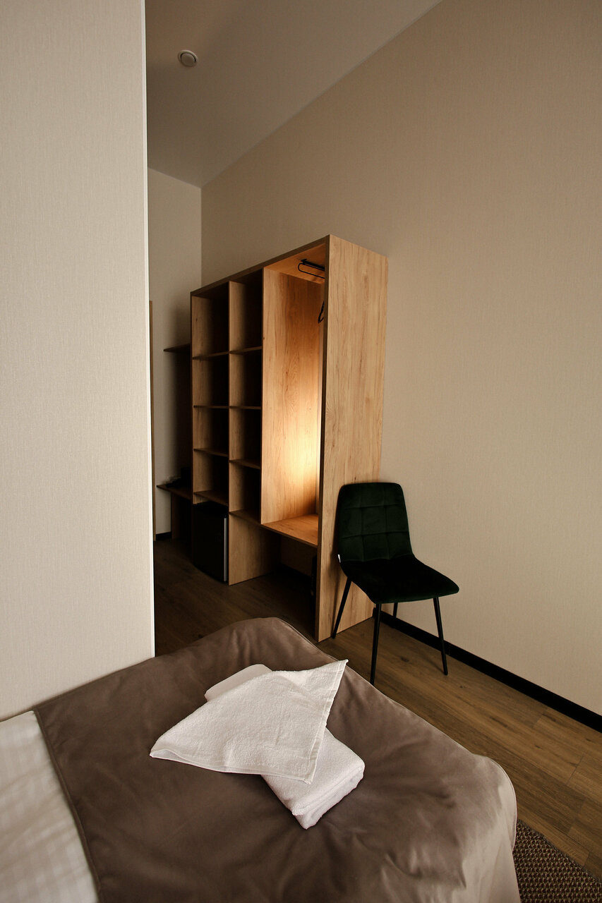 Добро пожаловать в наш уютный гостиничный номер, идеальное место для отдыха и восстановления сил! Просторный и светлый номер оформлен в современном стиле, с комфортной кроватью, мягкими подушками!