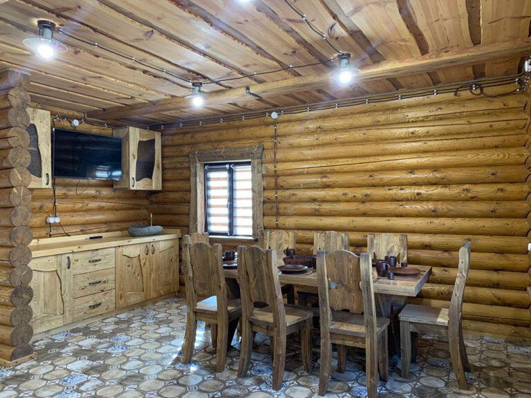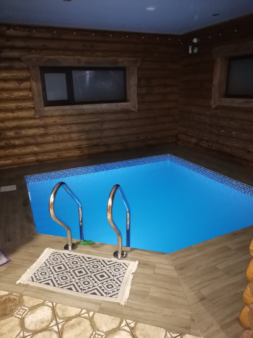 Посетили дом по дороге с юга! Уставшие, приехали и попали в сказочное место! Внутри даже лучше чем на фото. Очень атмосферно. Хозяин очень отзывчивый, все объяснил, показал, рассказал. Затопил баню за 3 часа, поэтому при входе — был приятный запах дров и тепло. Спать было некогда. Парились и купались в бассейне. И до ночи и с утра! Бассейн глубокий, на взрослого человека. Все очень чисто. Полотенца в достатке. Хозяин угостил медом и собственноручно приготовленным пловом в казане на улице. За что ему отдельная благодарность! В общем, приезжайте еще, не пожалеете. С животными тоже можно)