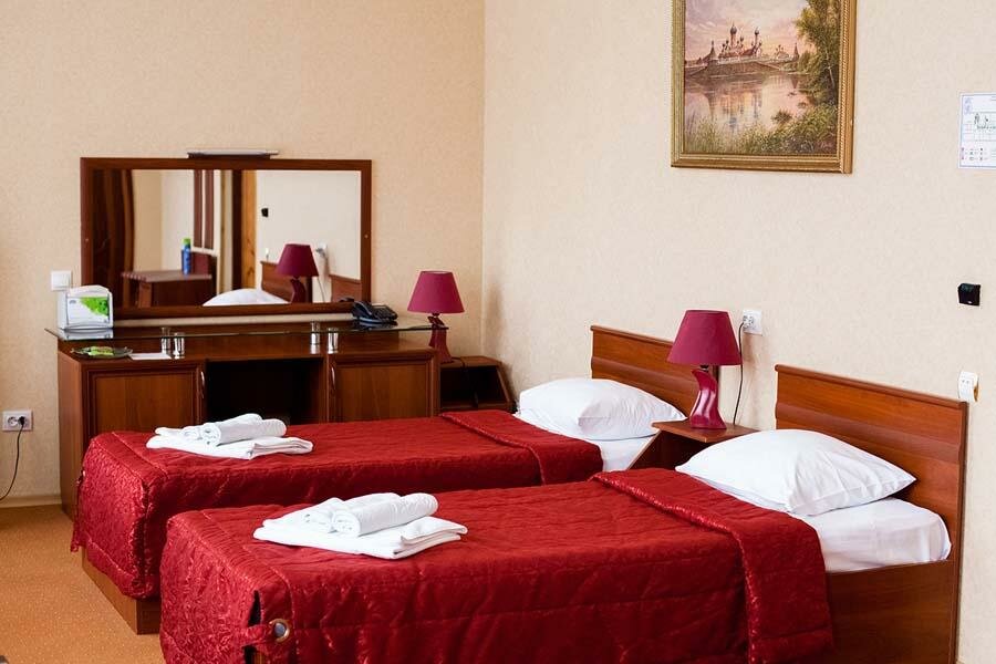 Две односпальные кроватиВ номере:Сплит-система, рабочее место, кресло, холодильник, телевизор, сейфПредусмотрено до 2 доп. мест. В стоимость включены:Завтрак - «Шведский стол», WI-FI, посещение тренажерного зала.