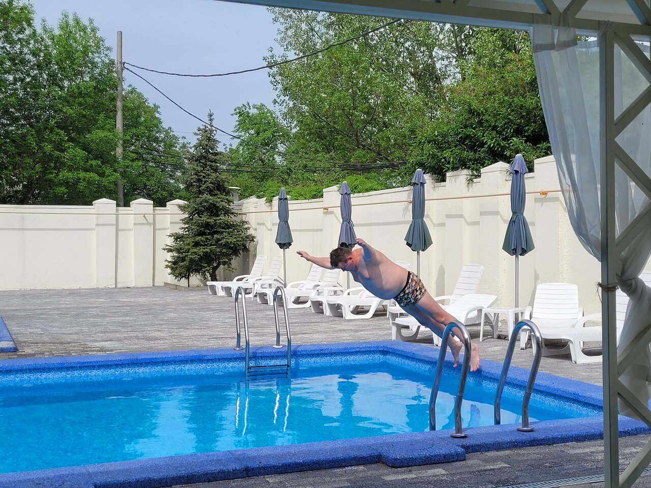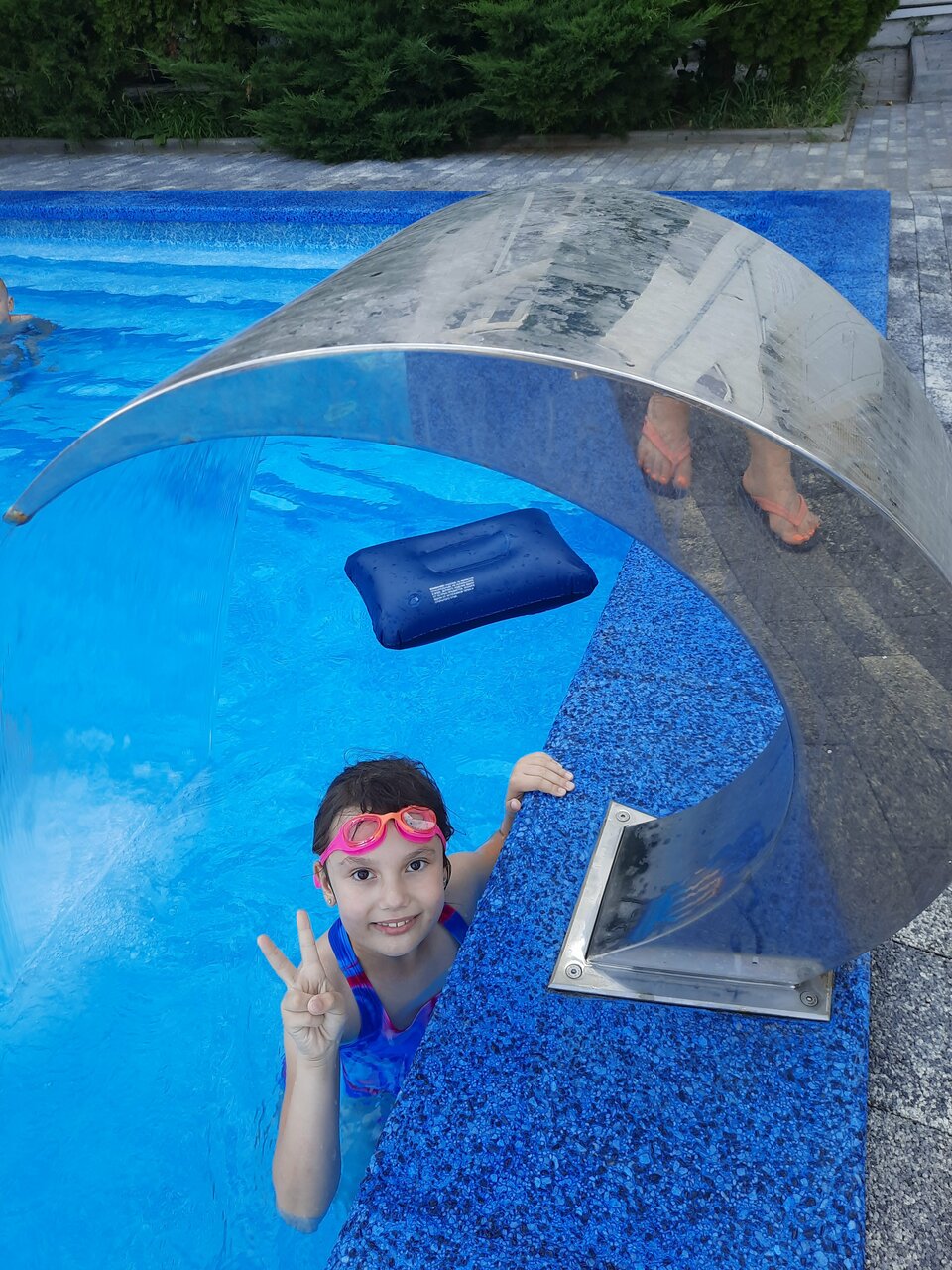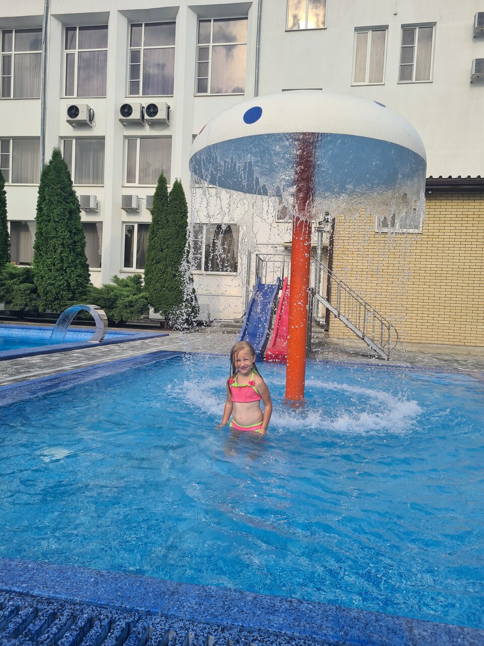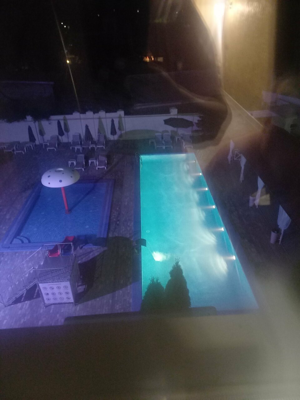 Останавливались семьей на сутки в номере Люкс. Персонал очень любезный, в номере все чисто, есть все необходимое. Ужин заказывали через ресторан. Еда вкусная, все принесли быстро. За еду ставлю 5. На завтраке была каши, макароны, курица, нарезки, яйца, кофе, чай , и т.д.. Все вкусно. Остановились бы еще- однозначно да. Все на твердую пятерку! В бассейне не плавали, но фото его прикладываю. Также фото счета за ужин, для ознакомления с ценами в ресторане. Очень хороший матрас на кровати. В коридоре стоит кулер с водой. Номер очень просторный. По запросу предоставили кроватку- манеж. Я рекомендую данный отель!