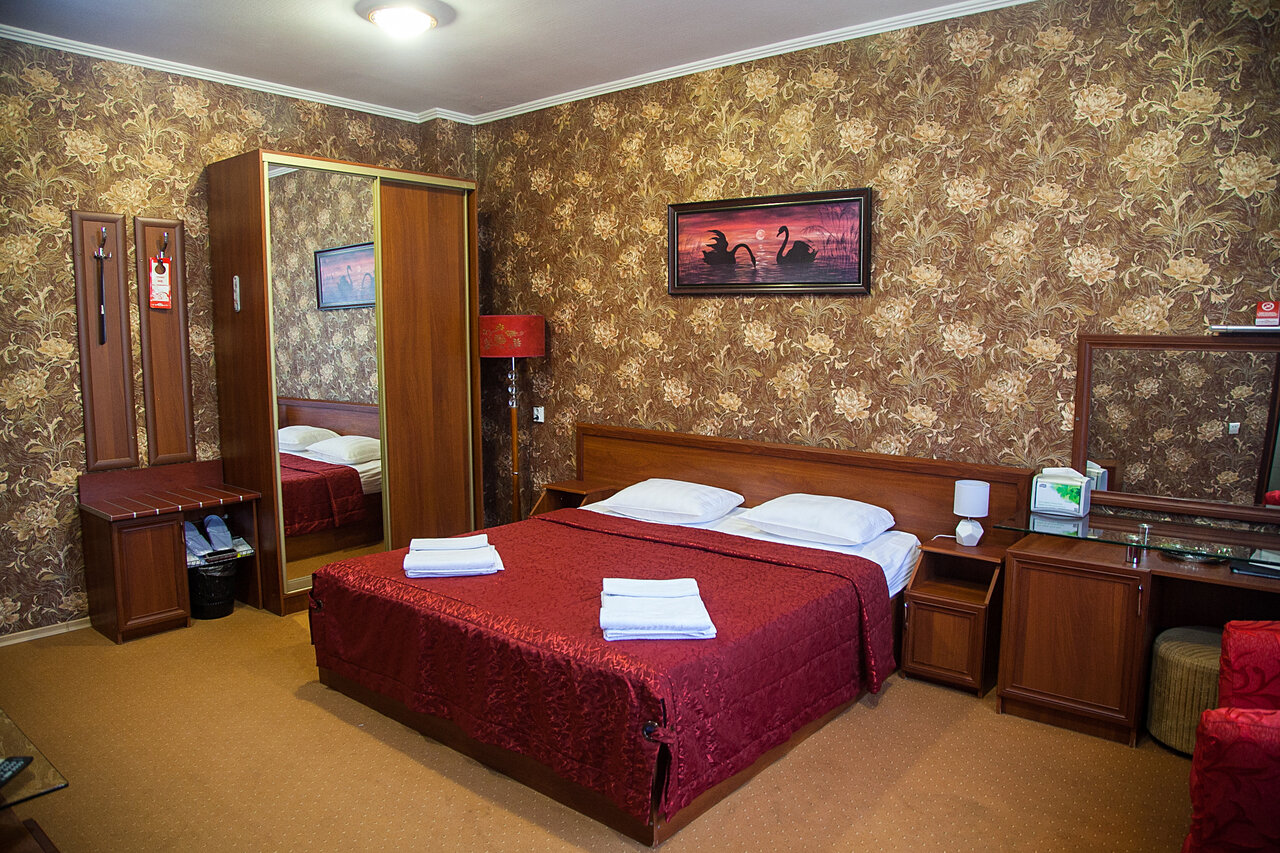 Большая двуспальная кроватьВ номере:Сплит-система, рабочее место, кресло, холодильник, телевизор, сейфПредусмотрено до 2 доп. мест. В стоимость включены:Завтрак - «Шведский стол», WI-FI, посещение тренажерного зала.