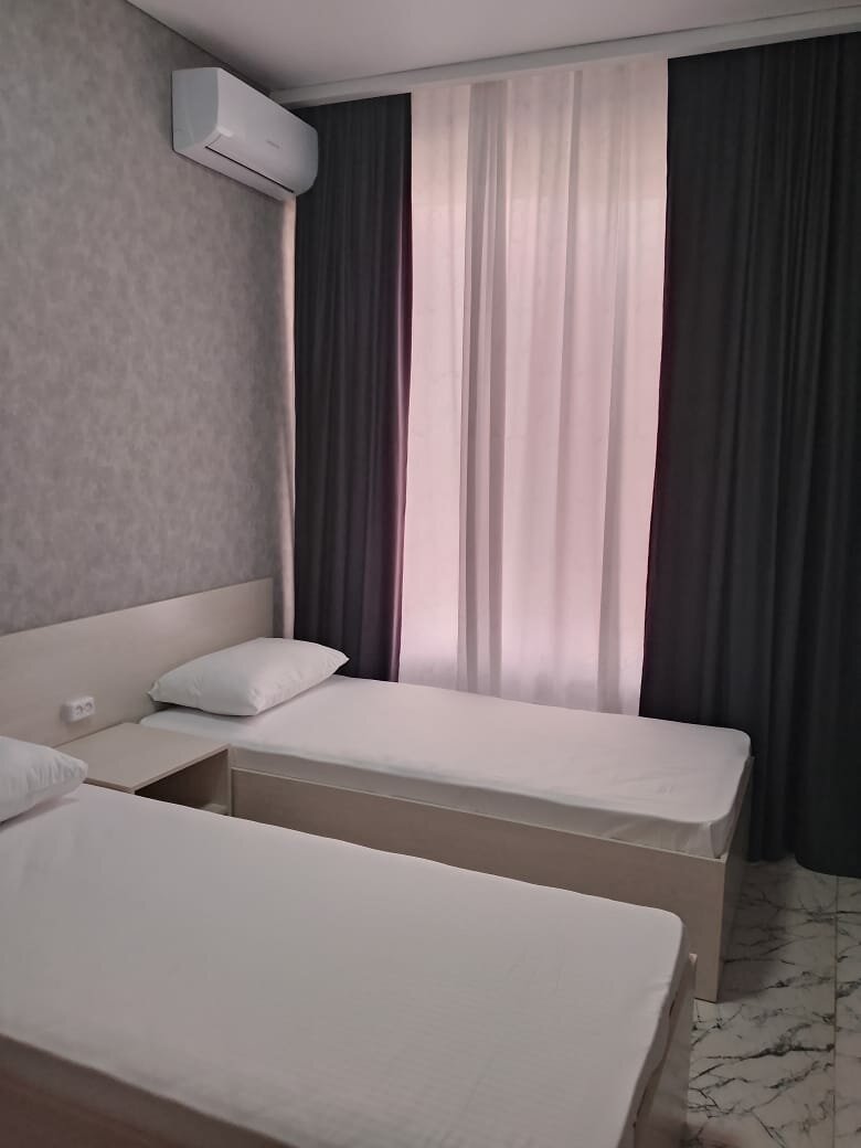Отличный отель, лучший в городе, все чисто, аккуратно, видно что за внутренним комфортом для посетителей следят, радует что всегда в номерах чисто, и свежо. Были с детьми, все в шаговой доступности. В каждом номере есть удобства в виде душа, туалета. Были в городе проездом, но однозначно, при следующем посещении города остановимся тут. В номерах есть чайные принадлежности, вода. P.S.:отдельная благодарность хозяину, видели как за всем следит самостоятельно!!!!!