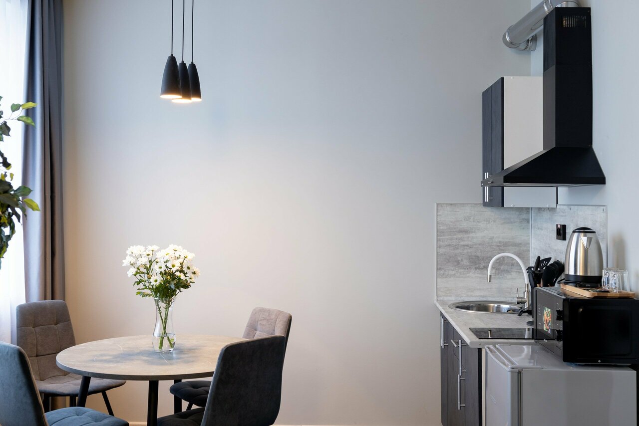 Отличный отель. Остановились семьей 4 человека. Места хватило всем. Удобно, что спальня отдельной комнатой от комнатки со столом, где можно было поработать и ни кому не мешать. Внизу кофейня со вкусными завтраками.