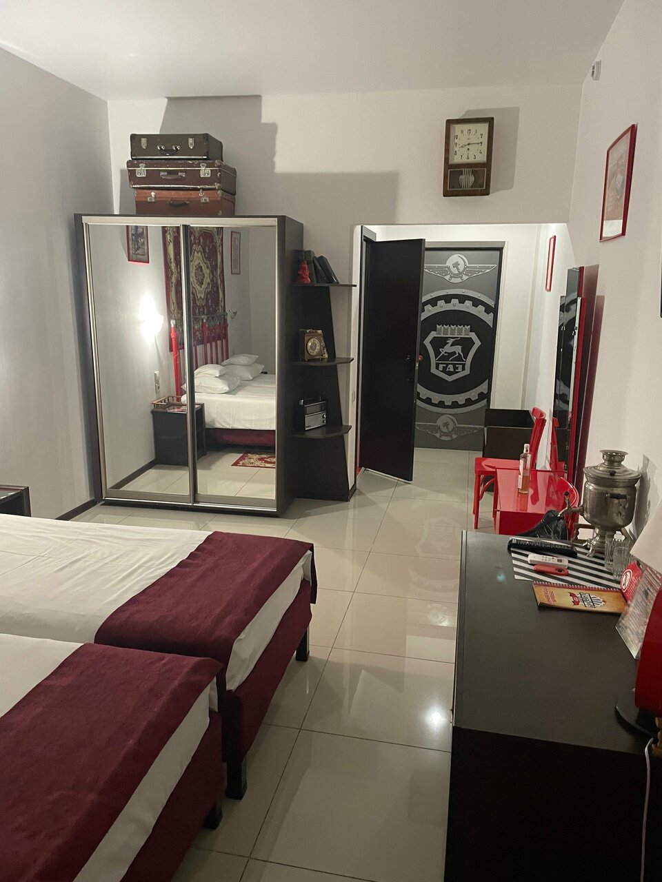 Отличный отель. Оформлен в интересном стиле. Номера чистые и комфортные. В отеле есть музей СССР, рекомендую посетить. Обязательно ещё здесь остановлюсь.