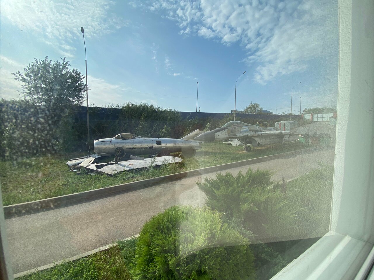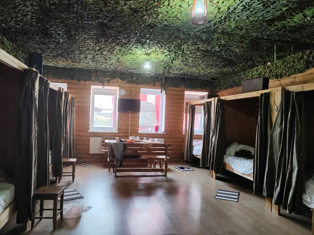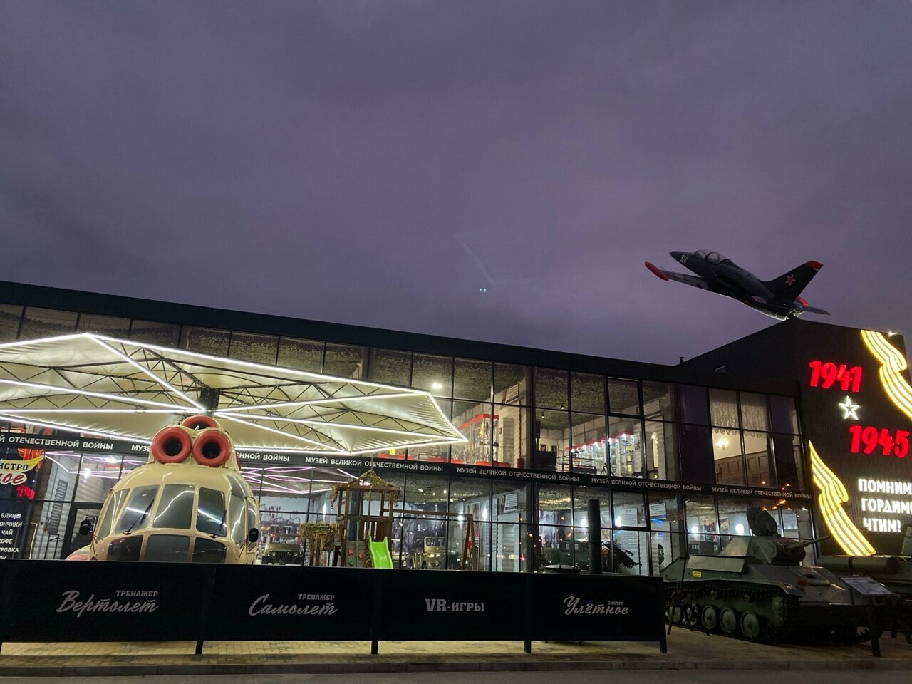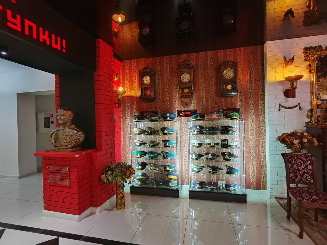 Это место вы не забудете никогда! Очень атмосферный отель! Масштаб музея военной техники впечатлил! Сам отель имеет большое количество интересных фотозон. Есть кафе на 1 этаже, кулер. Большой номер со всем необходимым: холодильник, кондиционер, тв. Чистота, что не может не радовать! Отель находится около трассы и это очень удобно для путешественников.