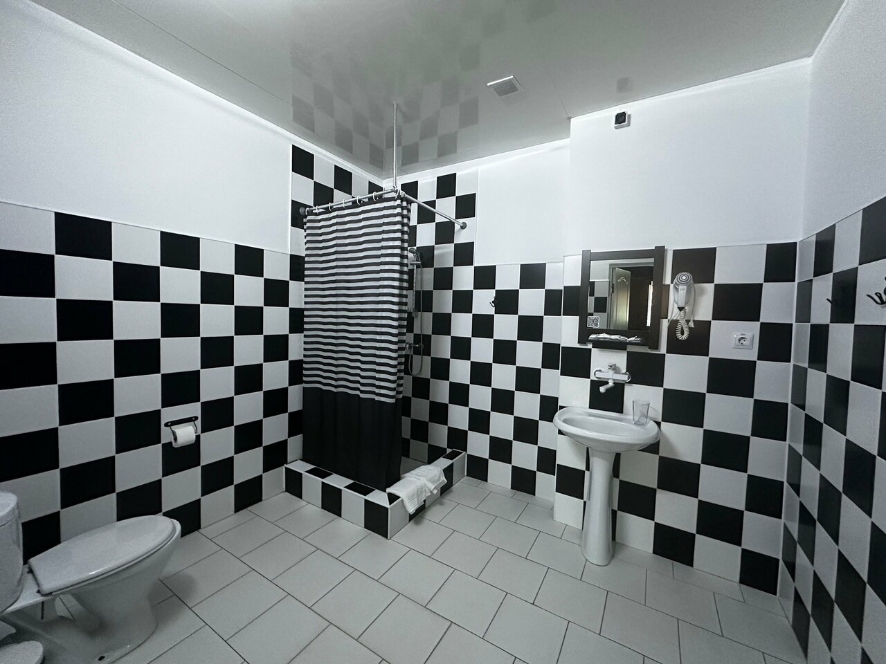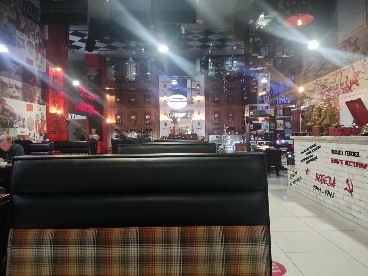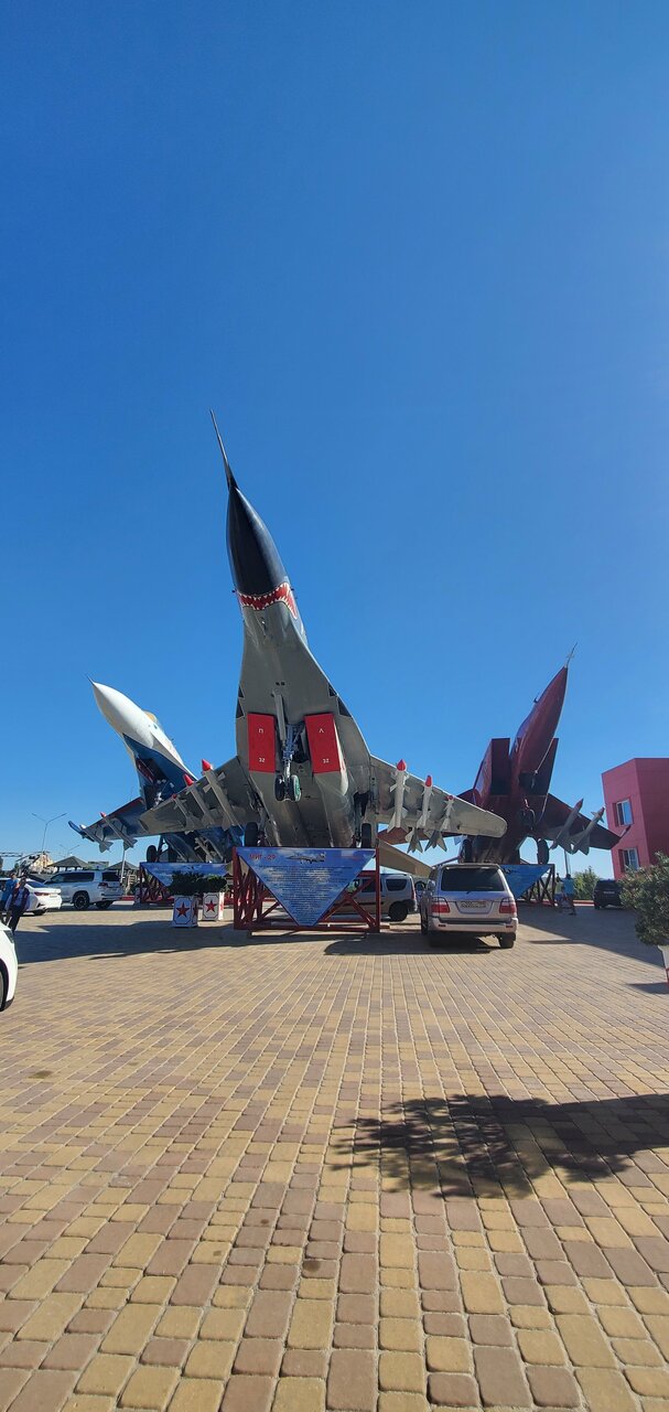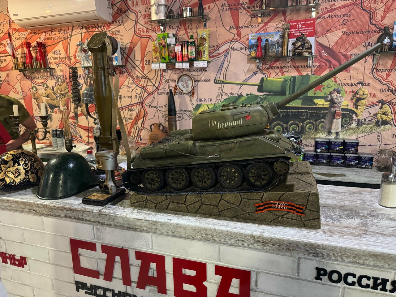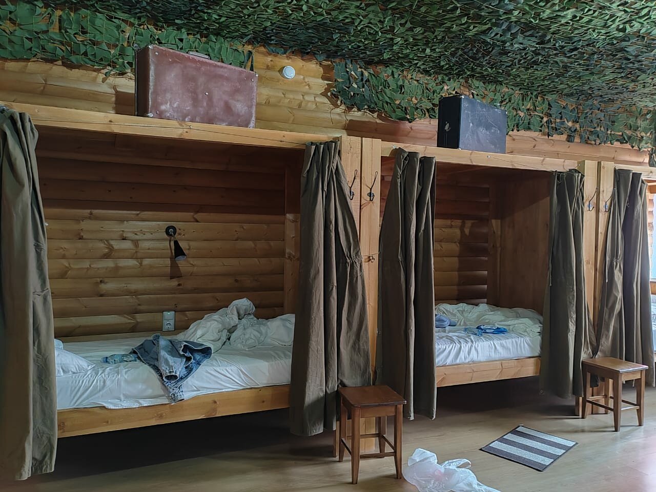 Это место вы не забудете никогда! Очень атмосферный отель! Масштаб музея военной техники впечатлил! Сам отель имеет большое количество интересных фотозон. Есть кафе на 1 этаже, кулер. Большой номер со всем необходимым: холодильник, кондиционер, тв. Чистота, что не может не радовать! Отель находится около трассы и это очень удобно для путешественников.