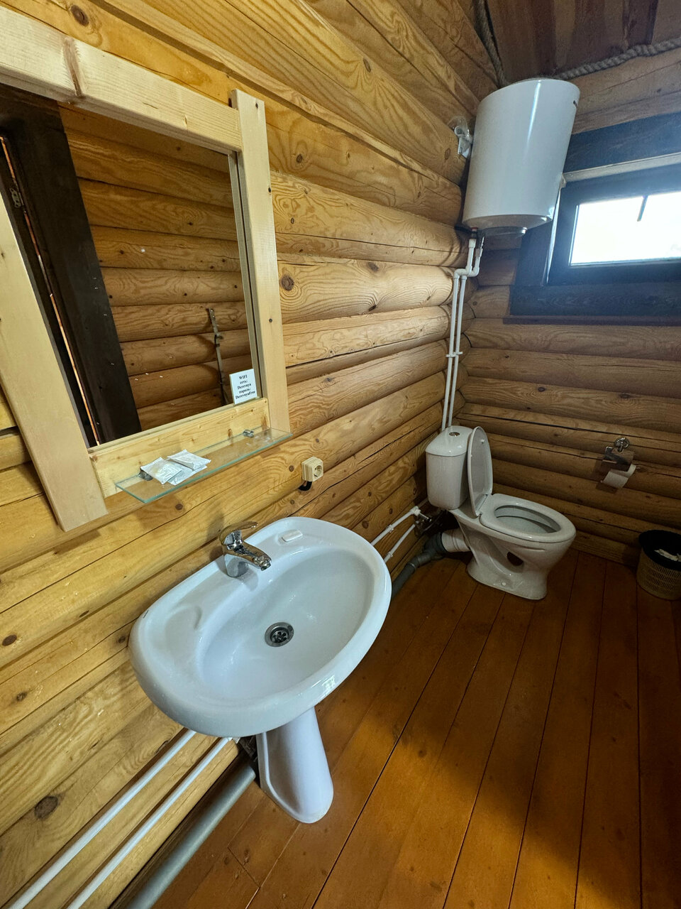 Был и в домиках и в основном здании в номере. Везде тепло, чисто. Вода горячая с хорошим напором, полотенца в полном комплекте, кондиционер работал хорошо. В целом положительные эмоции, ничего плохого сказать не могу. Экспозиция военной техники очень хорошая и интересная. Есть ещё много других развлечений, но приезжали уже поздно и они уже были закрыты. Могу смело рекомендовать для семей с детьми.