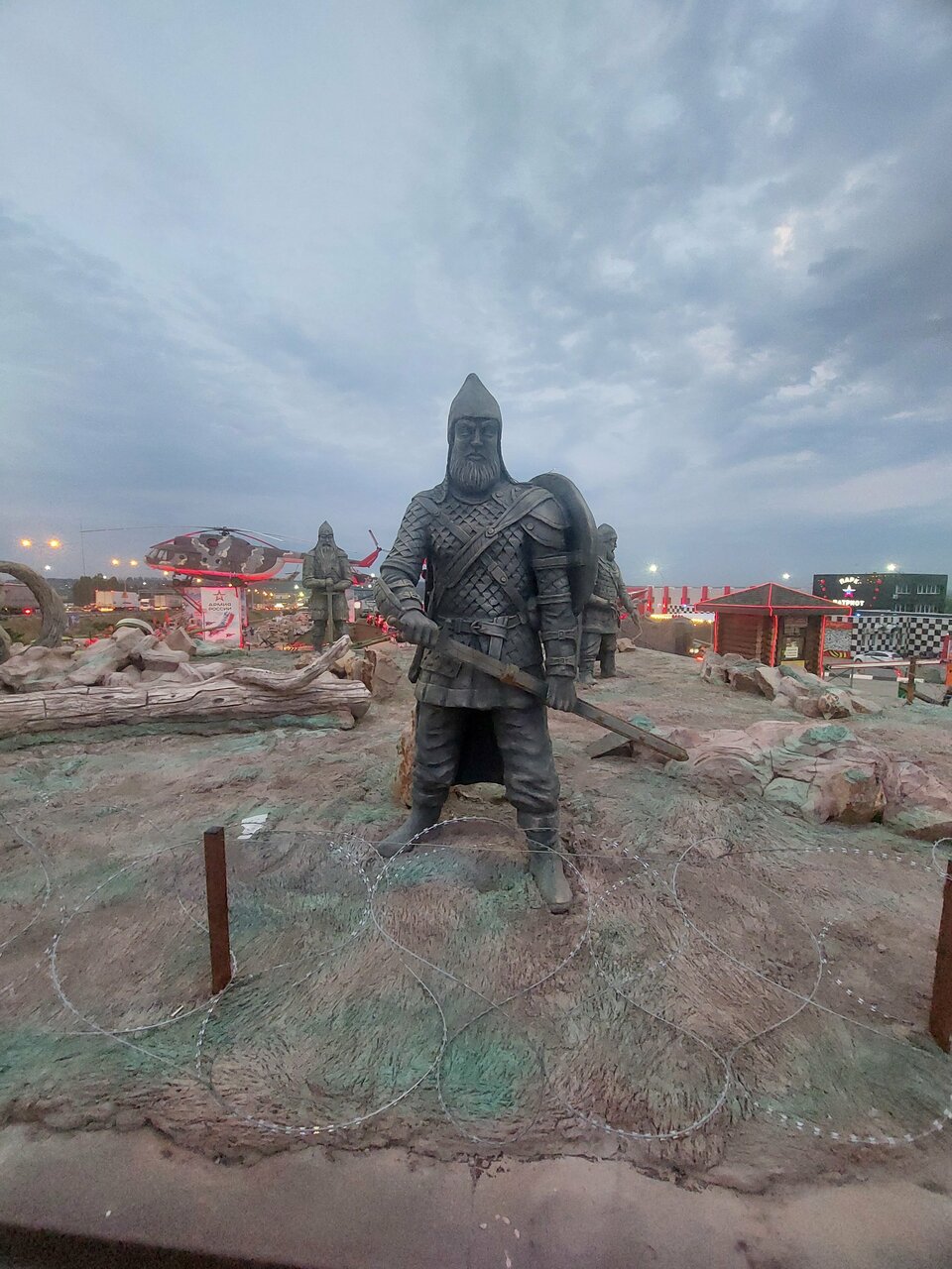 Замечательное место для отдыха с семьёй и детьми! Номера отличные 4200 на 2х с завтраком. Чистая постель, холодильник, кондиционер, шкаф, нормальный сан узел. Номер с балконом! Но был минус… С дальней дороги в 1000 км в номере было употреблено по 50гр коньяка))) на ужине в данном отеле официант нам предъявил что мы алкаши и в нас уже по 0.5) и постоянно за нами следил.. Видимо учится на чекиста в ФСБ)))) Иногда хамит разным посетителя, молодой, думаю исправится)))Совет не пейте перед ужинов в данном месте! Советую! Парк с техникой обалденный, можно целый день ходить и смотреть. Через дорогу есть кафе, шаурма, шашлыки, пятёрочка!