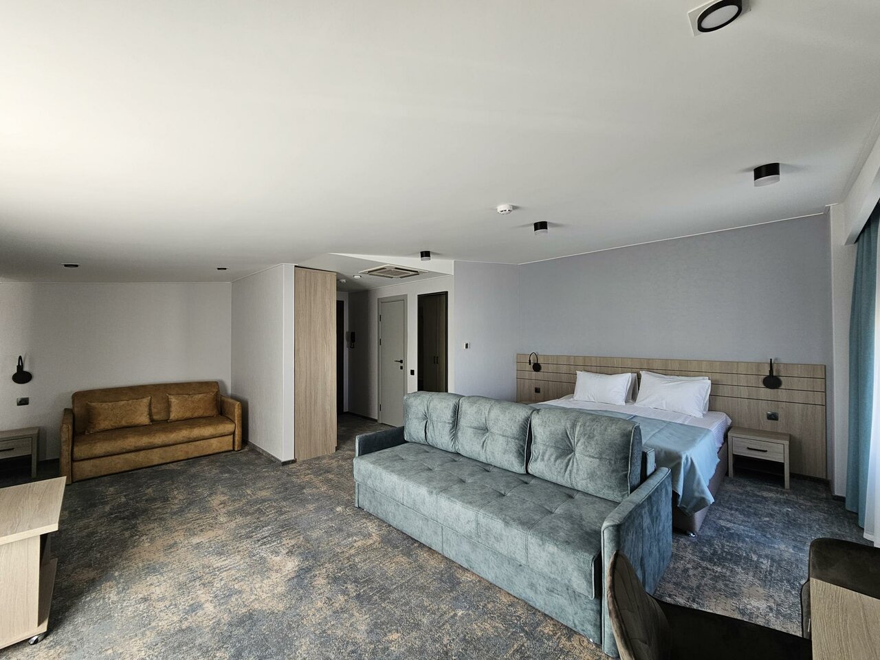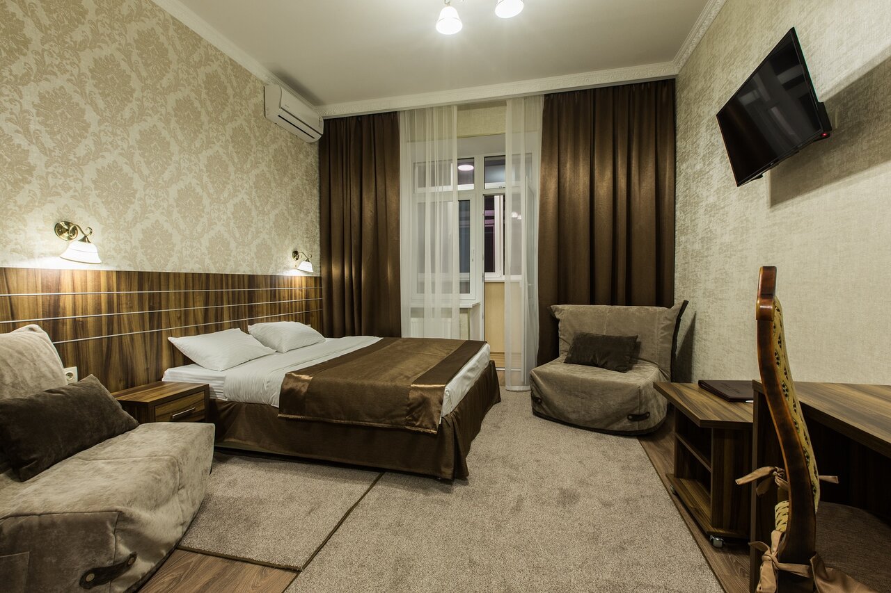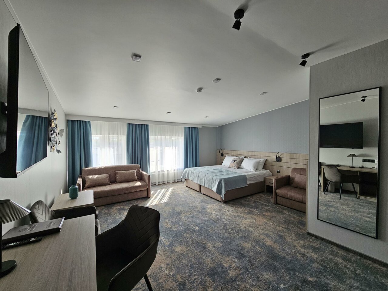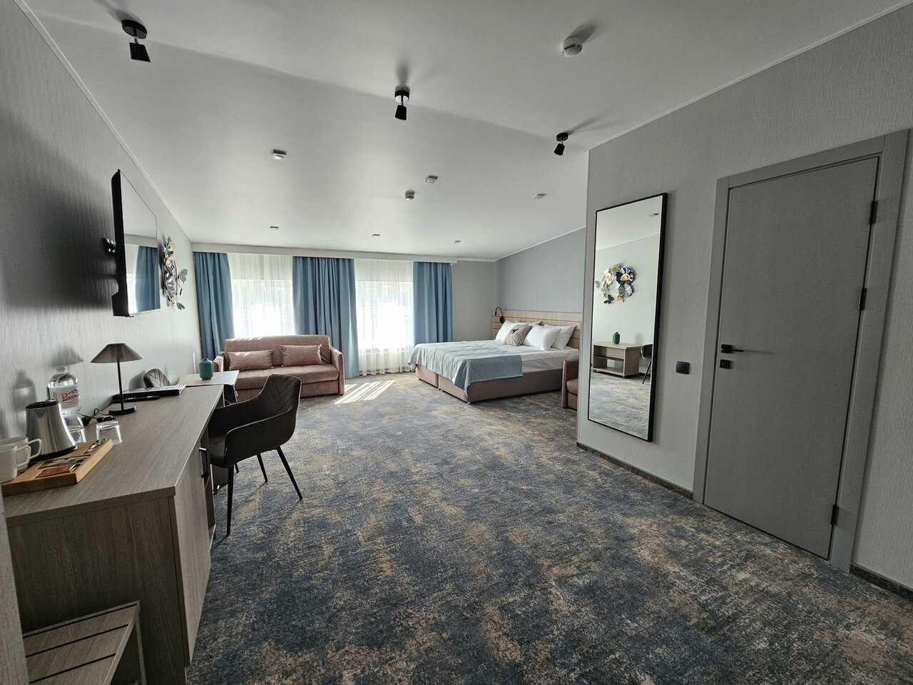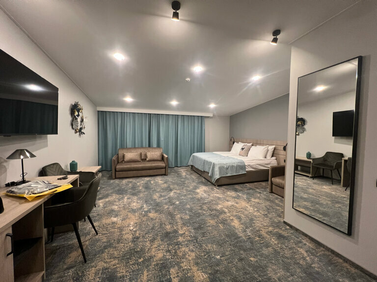 Шикарный отель. Номер огромный, останавливались двое взрослых и трое детей. Спальных мест всем было предостаточно. В номере полотенца, халаты, туалетные принадлежности, огромный телевизор, кондиционер, холодильник, сейф. Все очень достойно. Номер чистый, новый, приятно было находиться. А завтраки в их кафе это просто произведение искусства! Спасибо! Надеюсь мы еще к вам вернемся.