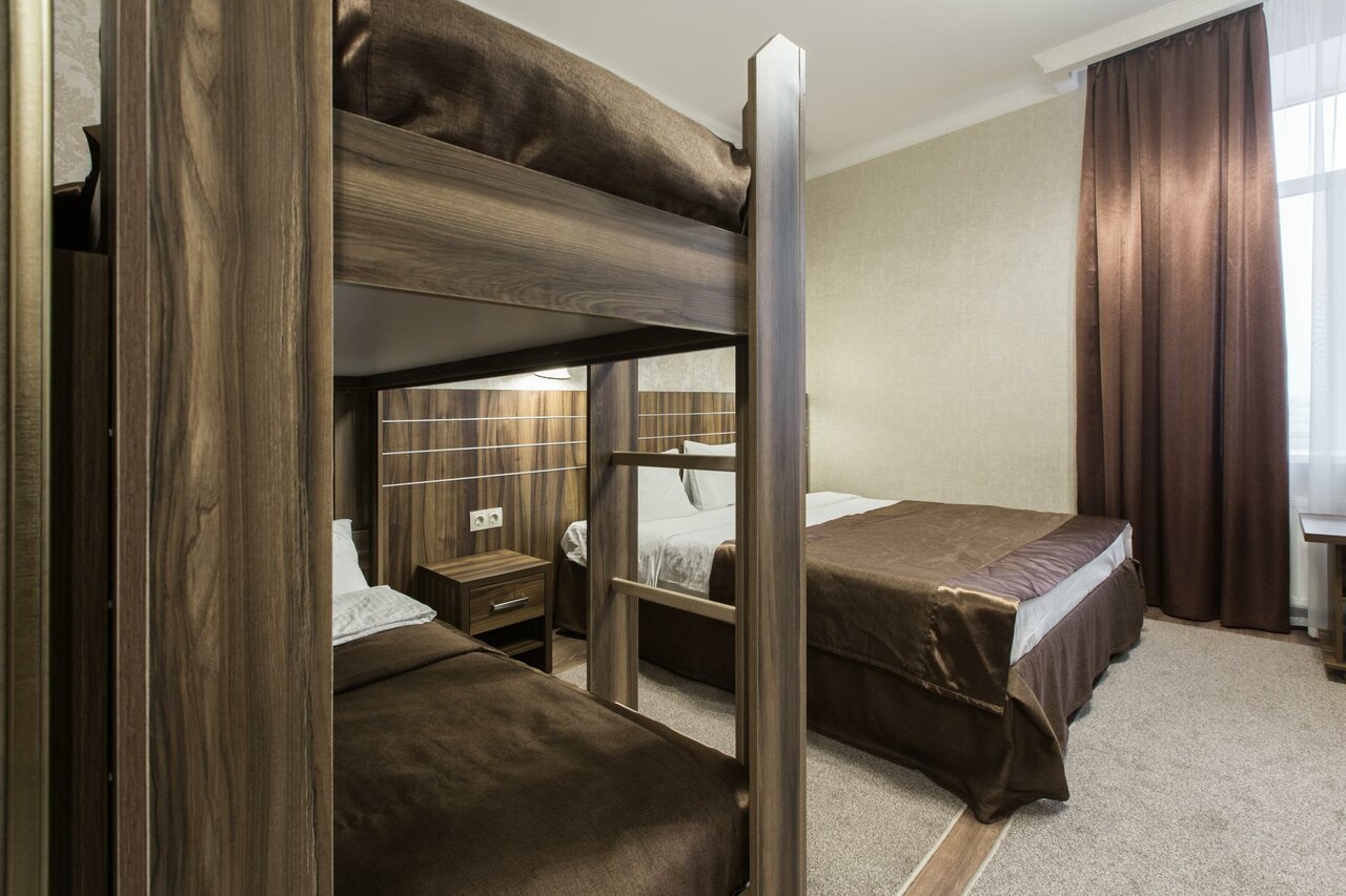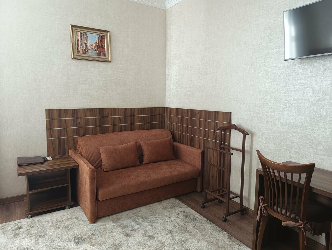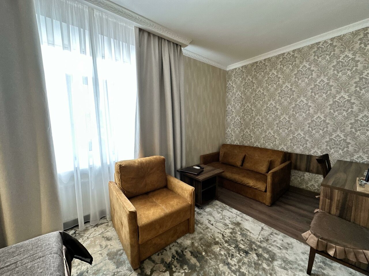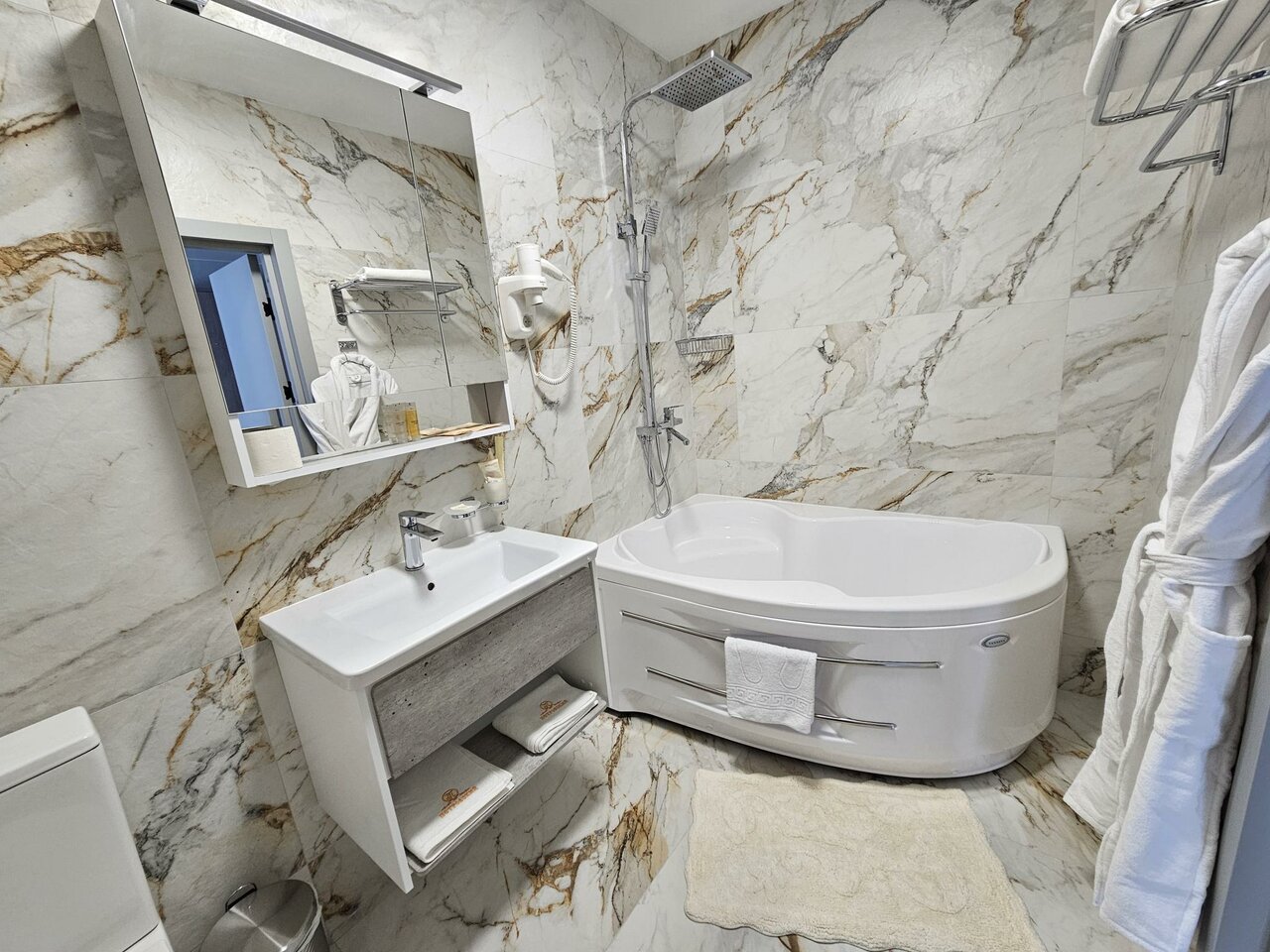 Шикарный отель. Номер огромный, останавливались двое взрослых и трое детей. Спальных мест всем было предостаточно. В номере полотенца, халаты, туалетные принадлежности, огромный телевизор, кондиционер, холодильник, сейф. Все очень достойно. Номер чистый, новый, приятно было находиться. А завтраки в их кафе это просто произведение искусства! Спасибо! Надеюсь мы еще к вам вернемся.