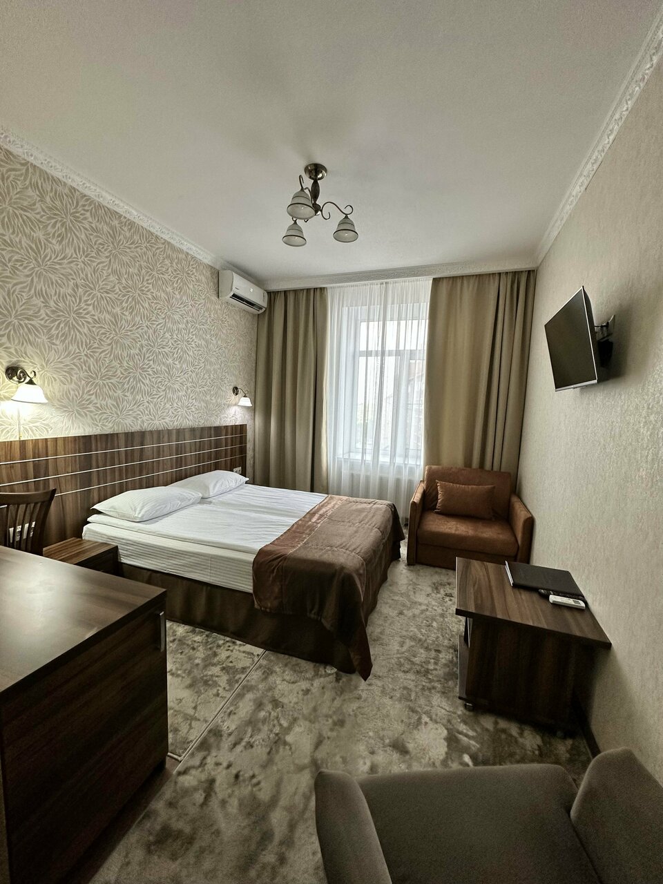 Плюсы: удобное расположение, хороший номер и завтрак (есть варианты на выбор). Минус: Теперь о том, что испортило впечатление об этом отеле. Останавливались несколько раз (по совету друзей). Все нравилось. В летом 2024 г. Решили также остановиться в Петровском туда и обратно. Бронировали за несколько недель.По пути на юг 28 июля все прошло хорошо, а вот обратно — с неприятным сюрпризом. 4 августа (за две недели до нашего заезда приходит сообщение о том, что руководством принято решение поднять стоимость проживания с 29 июля сразу на 1700 руб., т.е. 7700.! А если не согласитесь сразу оплатить, останетесь без номера. Оплатили. Времени искать что-то другое не было. Через несколько дней приходит от них сообщение с напоминанием, что номер мы забронировали, оплата….6000 руб. Звоним в Петровский с вопросом, что это значит. Ответ: ‘Ой, ошибочно разослано’. Если решитесь останавливаться, то возможны вот такие ‘ сюрпризы’ с изменением цены в любой момент.