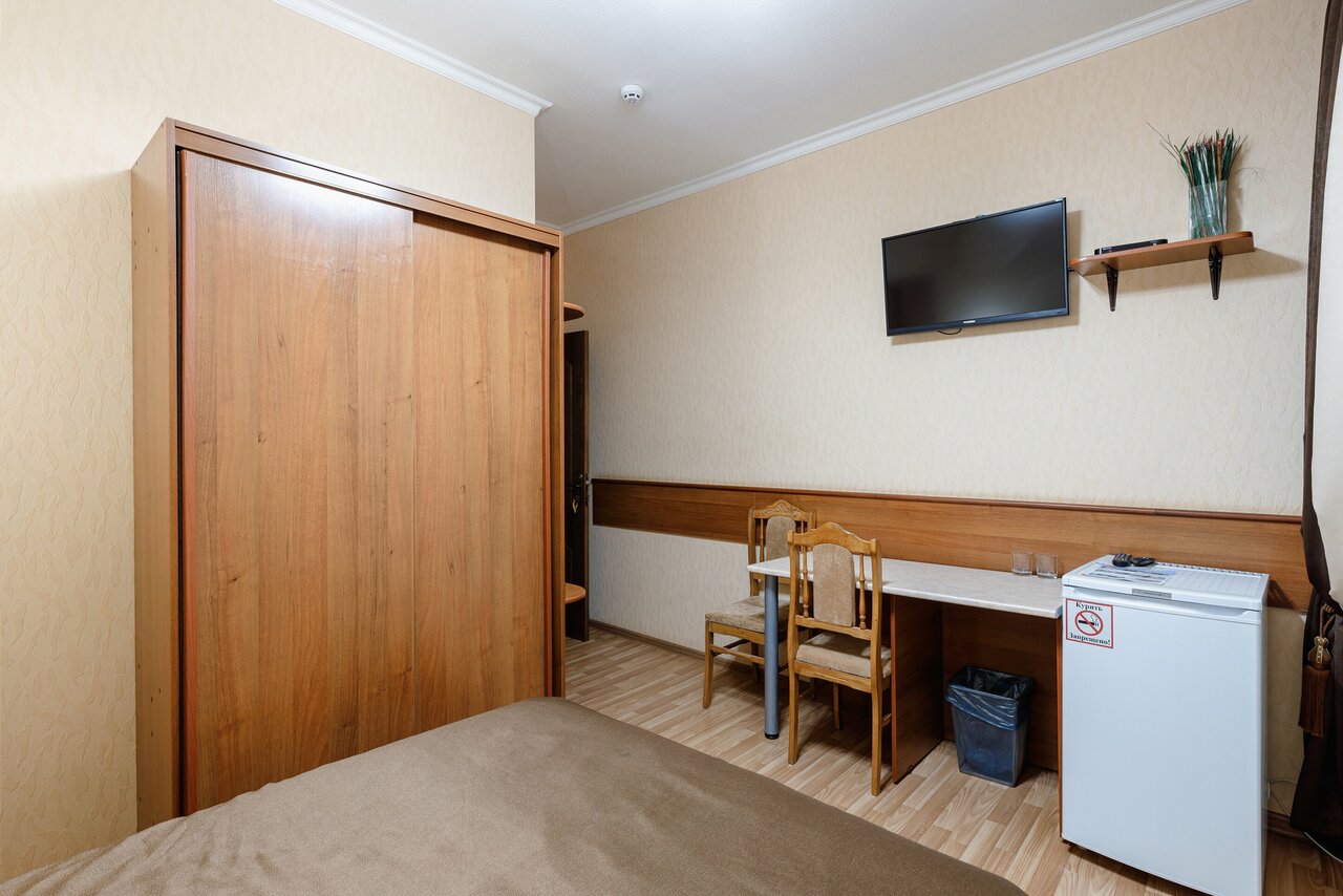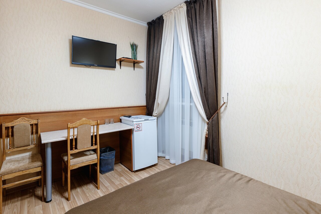 Две кровати;Ванная комната;Телевизор;Спутниковое телевидение;Wi-Fi;Холодильник;Стол для полноценной работы вкомандировке;Завтрак - 550 руб.