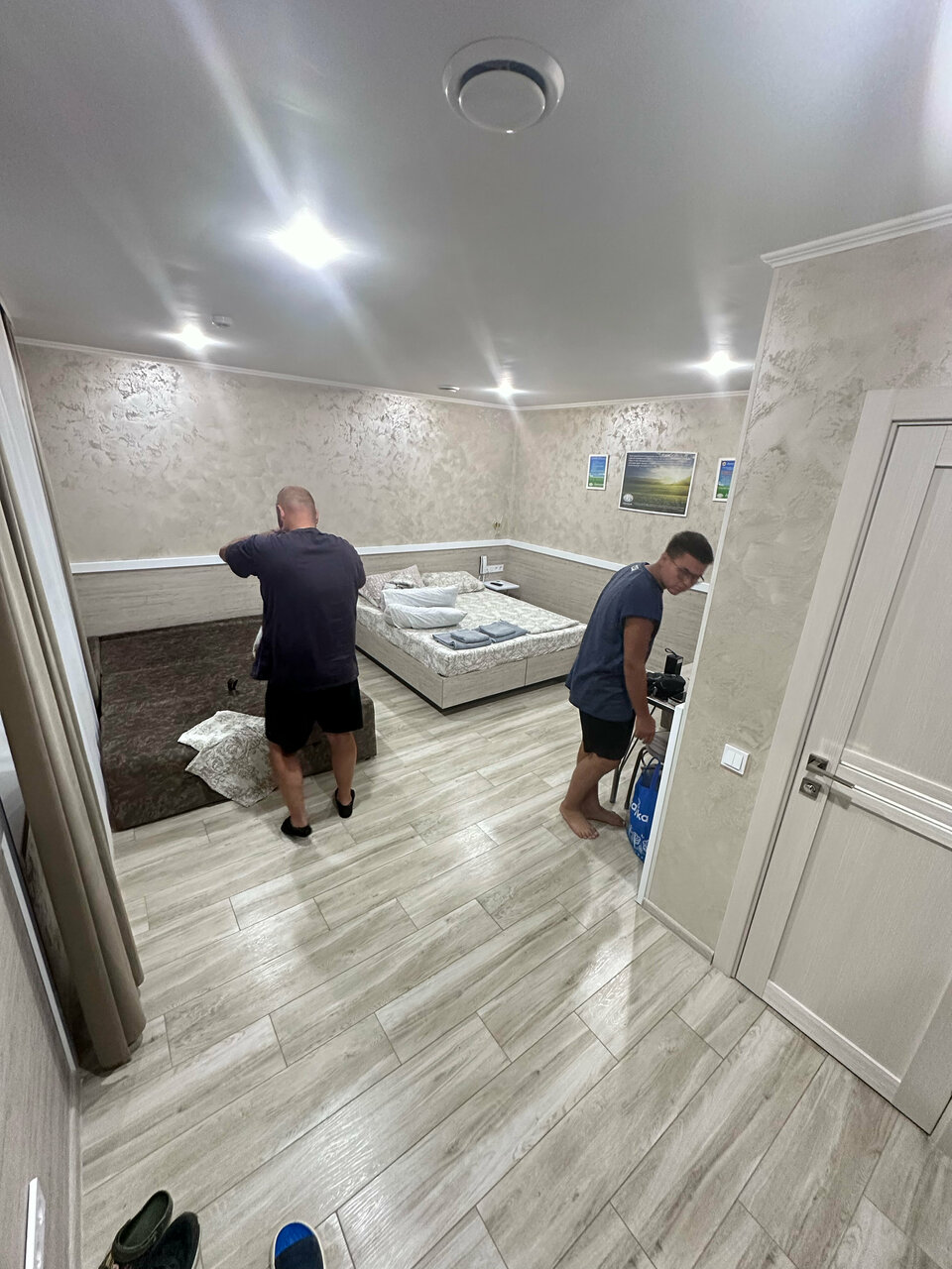 Ехали с юга, ближе к ночи стали искать мотель, администратор прекрасно услышала, что нас четверо и нам нужно два номера. Приехав, нам был предложено один большой 4-х местный номер в надежде, что люди уставшие и просто рухнут спать. Но мы не даем себя в обиду. Поехали дальше и прекрасно нашли место, хотя ехали в самый трафик 30 августа