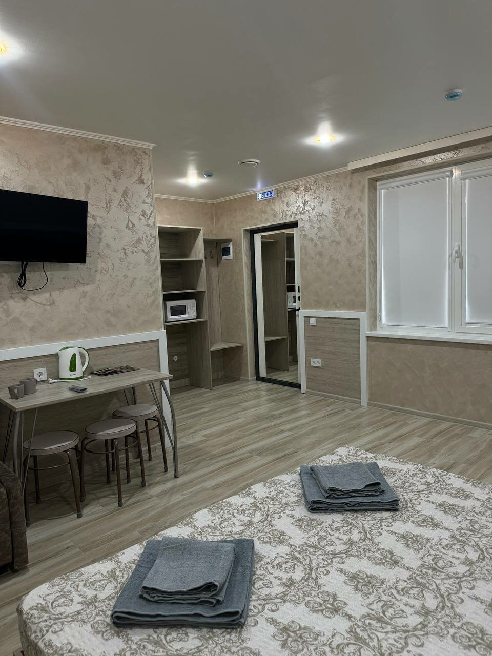 Останавливались здесь по дороге с моря. За номер на 2 взрослых и 1 ребенка 6 лет на одну ночь, отдали 6 тысяч рублей. На мой взгляд дороговато, зато в номере чисто и все есть, что необходимо. Магазины в шаговой доступности. В номере чай, чайник, холодильник, кондиционер.