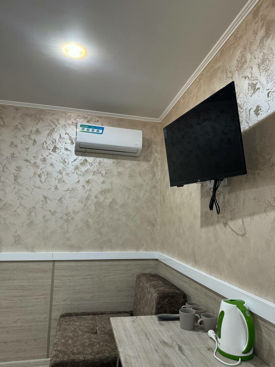 - В номере есть чайник, холодильник, микроволновка, кондиционер.