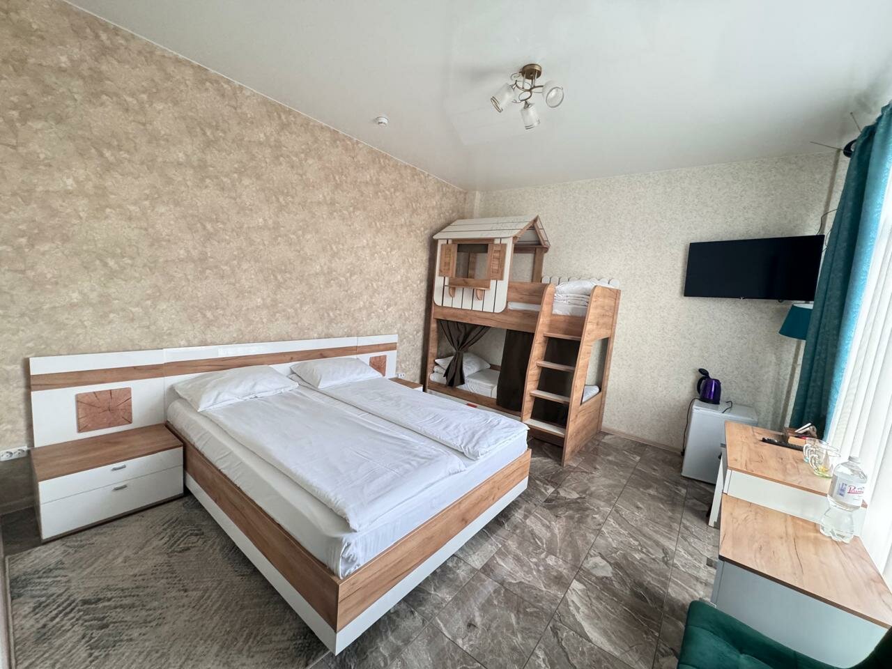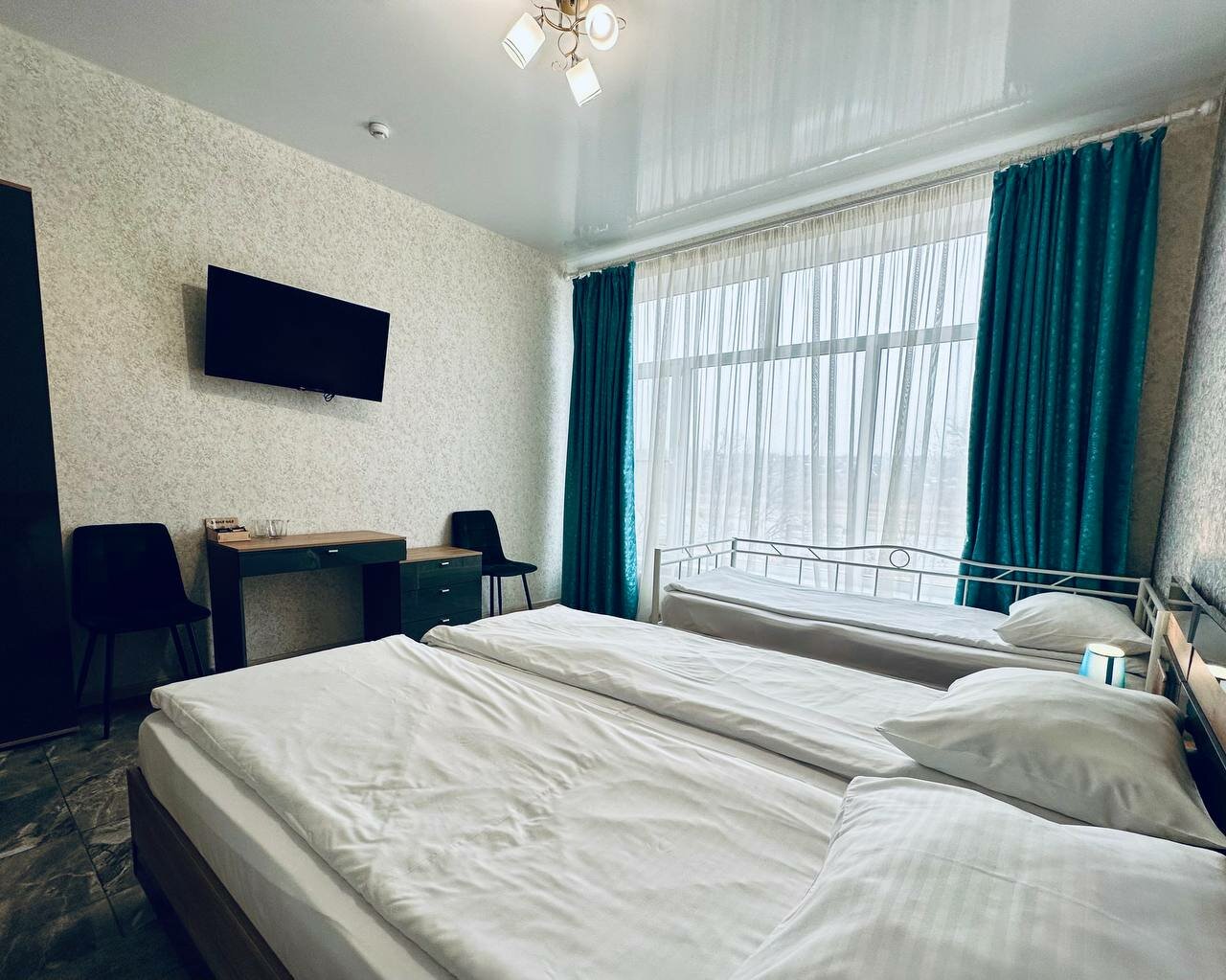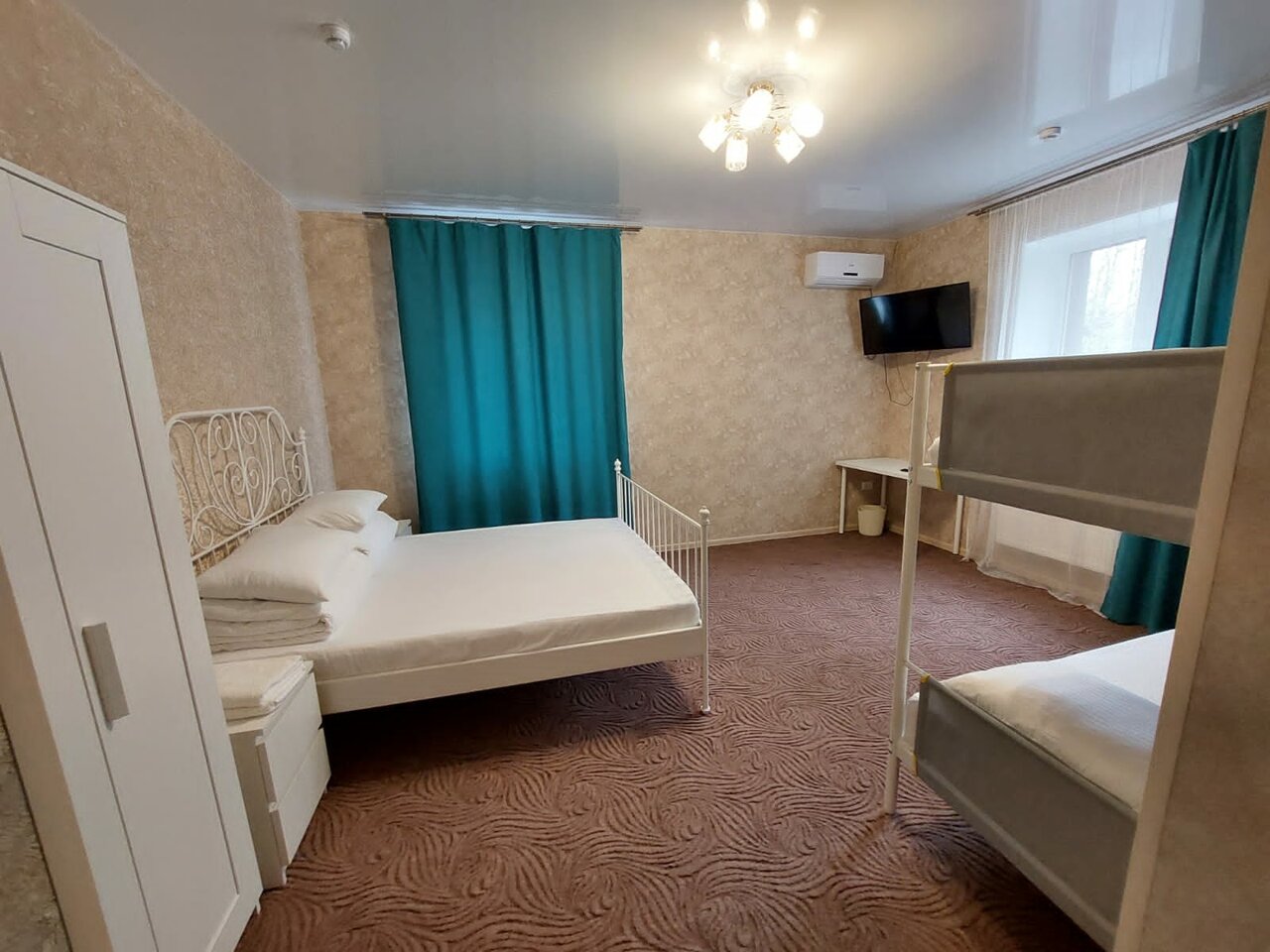 По пути на море остановились на ночлег. Трёхместный номер на первом этаже с отдельным выходом на улицу. Все очень понравилось! Чисто, есть холодильник с морозилкой. Постельное чистое, кровати удобные. В отзывах писали, что кондиционер дует на кровать, у нас же он висел над входной дверью, а кровати были за стеной. Никому ничего не дуло, было очень комфортно. Так что нареканий нет. Спасибо! С удовольствием вернёмся.