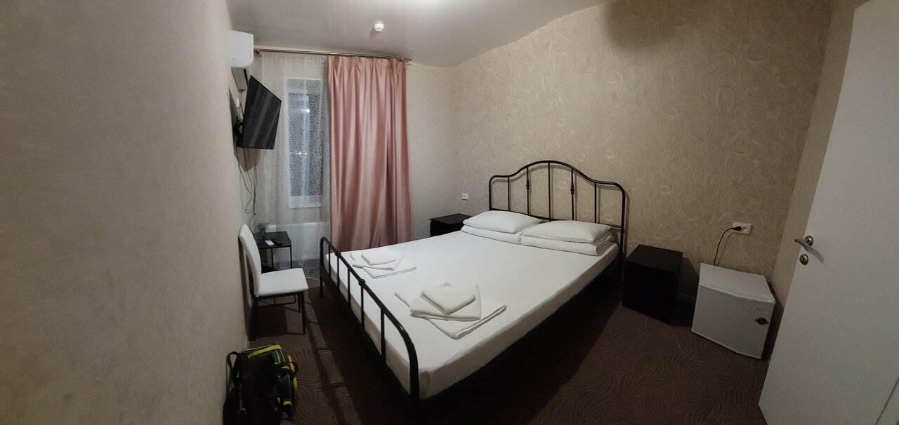 Заехали по пути в Сочи на одну ночь. Чисто и уютно очень удобные кровати, на утро было немного холодно и в номере пахло моющими средствами которые уже настоялись.Очень комфортно советуем!