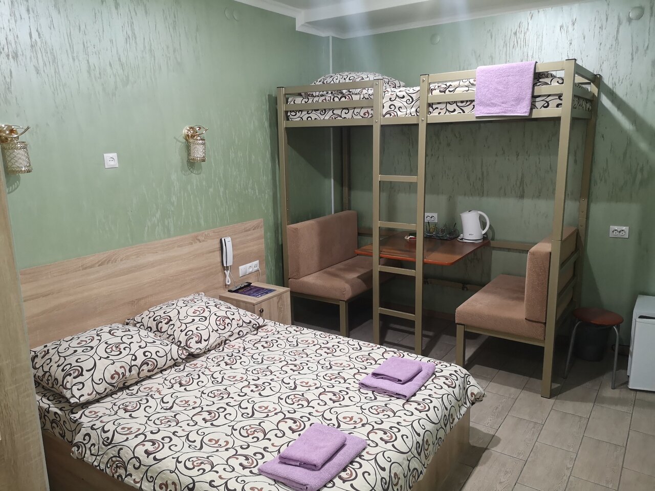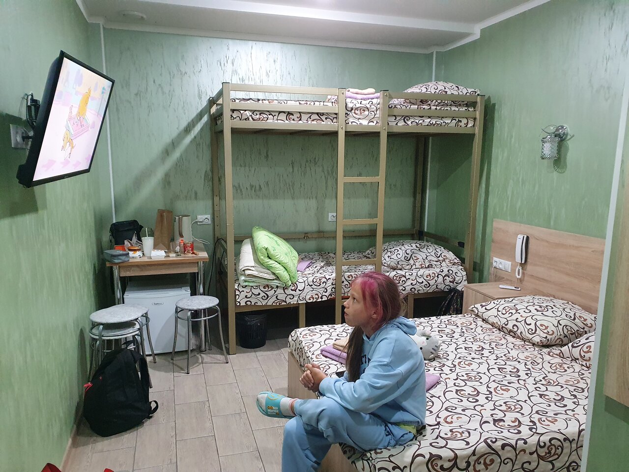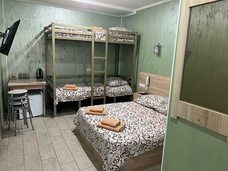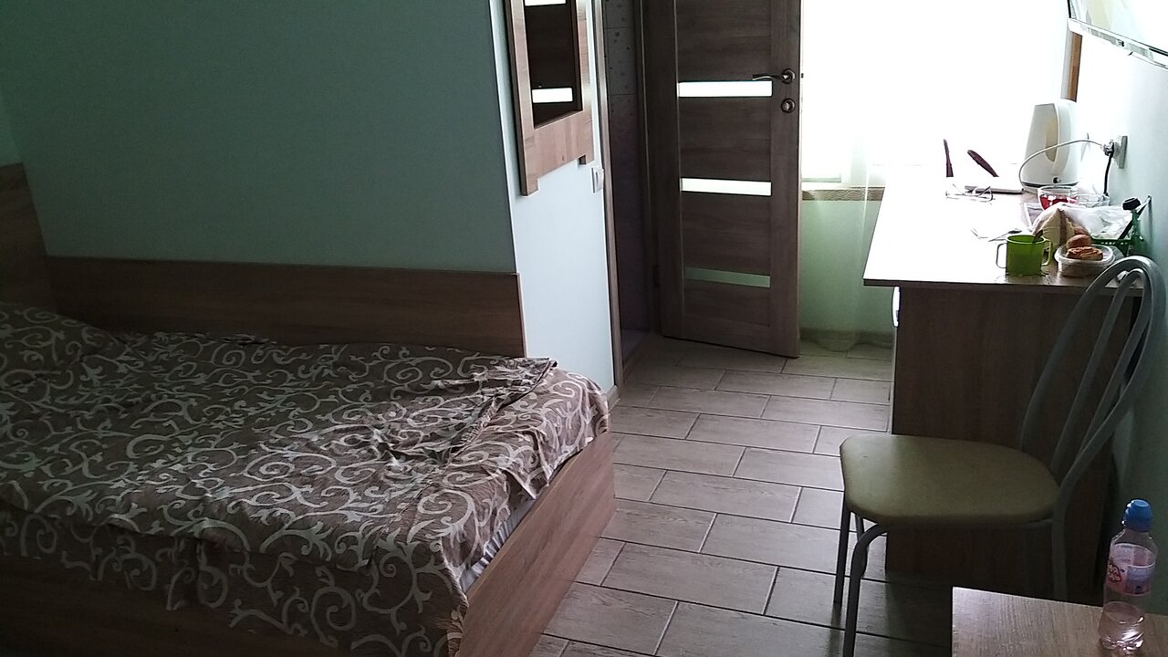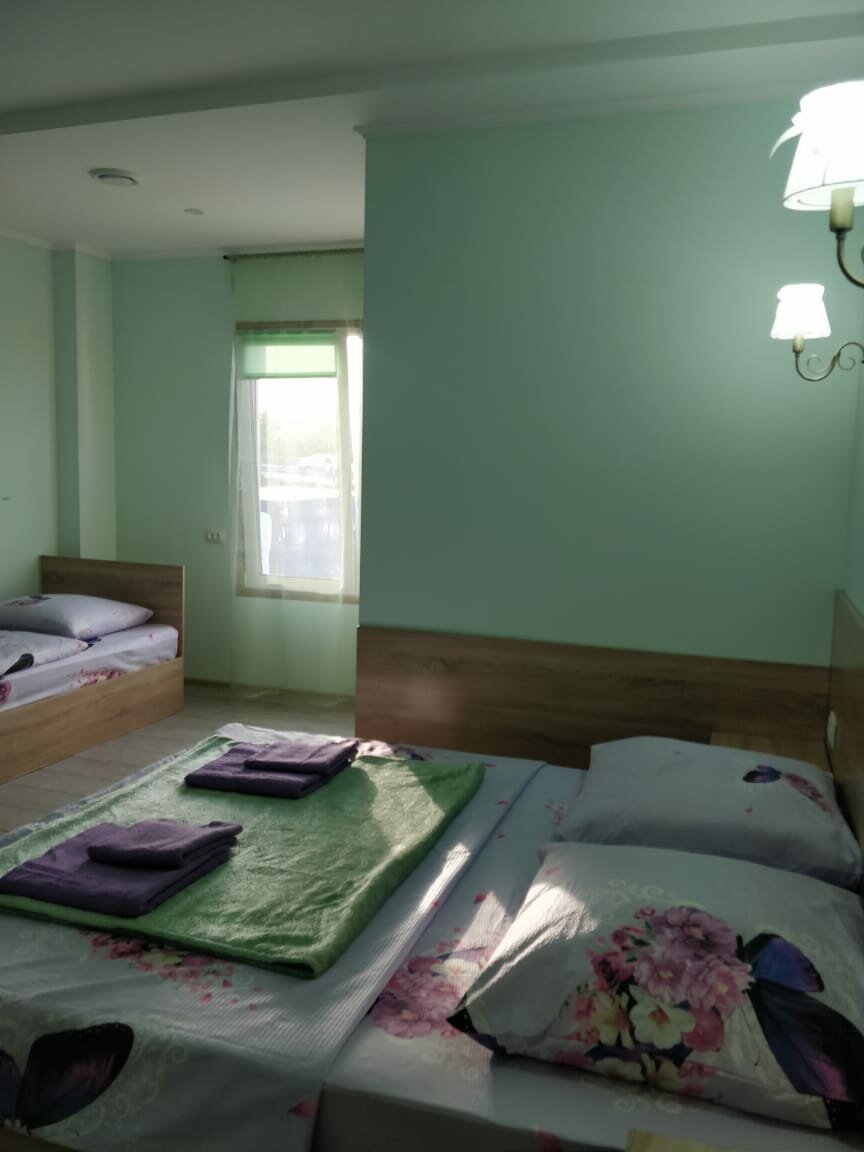 Было это в июле 2022. Начнём с цены , так как не было практически никаких свободных номеров,мне предложили четырёхместный. Цена на секундочку 4200 за одну ночь!!! Средняя цена отеля в июле в Крыму в отеле на первой береговой линии, а тут пыль дороги М4 темнота и грязь. Начнём: в так называемом номере есть выход на трассу , он же и служит единственным окном. Есть двухспальная кровать и двухъярусная всё это на 10 м2. Полотенца были настолько застиранные, что больше похожи на мешок. Нет элементарно тапочек, стаканов , зубного набора. Есть только мыло в душе в обычной банке общего пользования. Полы грязные , а душ это отдельная история. Антисанитария полнейшая, повсюду грязь в прямом смысле слова. И это я не говорю про еле живую сантехнику в налёте. И вишенка на торте это запах как в канализационном коллекторе. И всё это удовольствие за 4200!!!