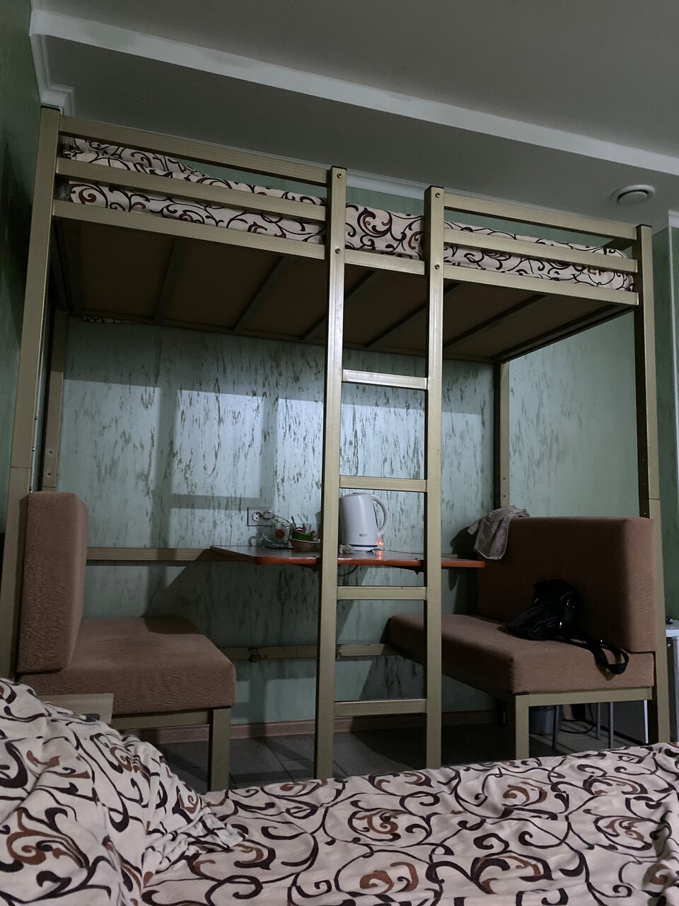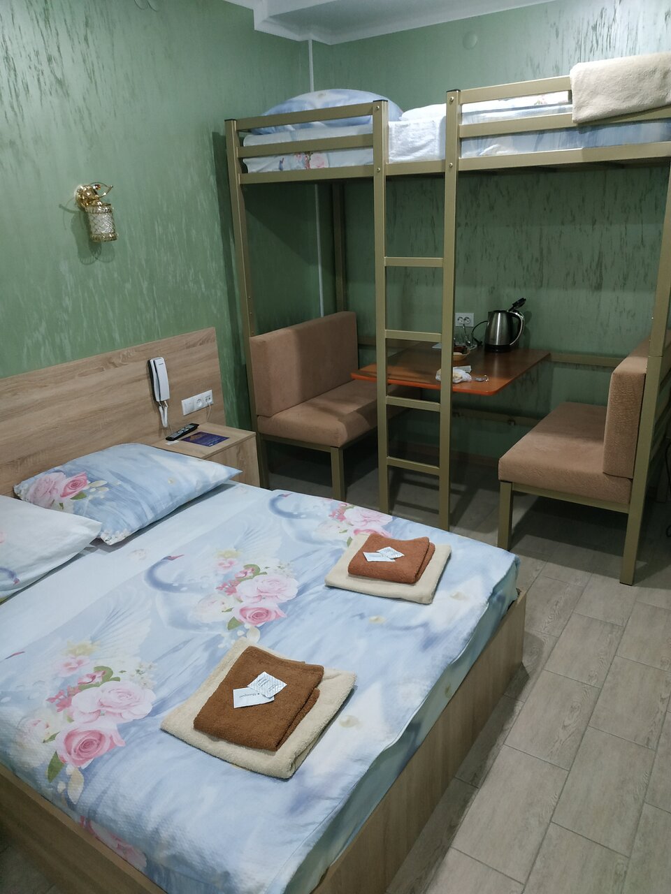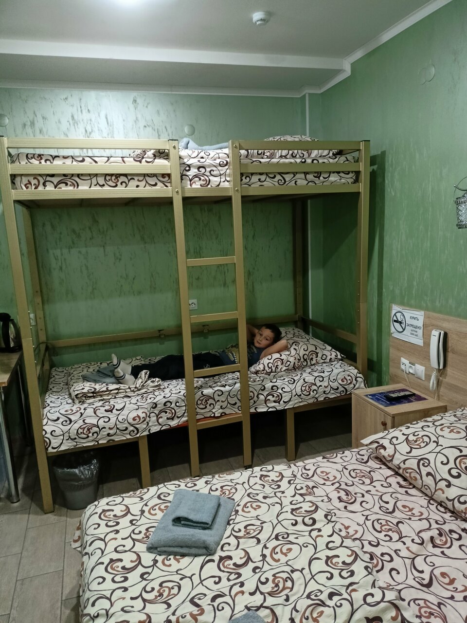 Было это в июле 2022. Начнём с цены , так как не было практически никаких свободных номеров,мне предложили четырёхместный. Цена на секундочку 4200 за одну ночь!!! Средняя цена отеля в июле в Крыму в отеле на первой береговой линии, а тут пыль дороги М4 темнота и грязь. Начнём: в так называемом номере есть выход на трассу , он же и служит единственным окном. Есть двухспальная кровать и двухъярусная всё это на 10 м2. Полотенца были настолько застиранные, что больше похожи на мешок. Нет элементарно тапочек, стаканов , зубного набора. Есть только мыло в душе в обычной банке общего пользования. Полы грязные , а душ это отдельная история. Антисанитария полнейшая, повсюду грязь в прямом смысле слова. И это я не говорю про еле живую сантехнику в налёте. И вишенка на торте это запах как в канализационном коллекторе. И всё это удовольствие за 4200!!!